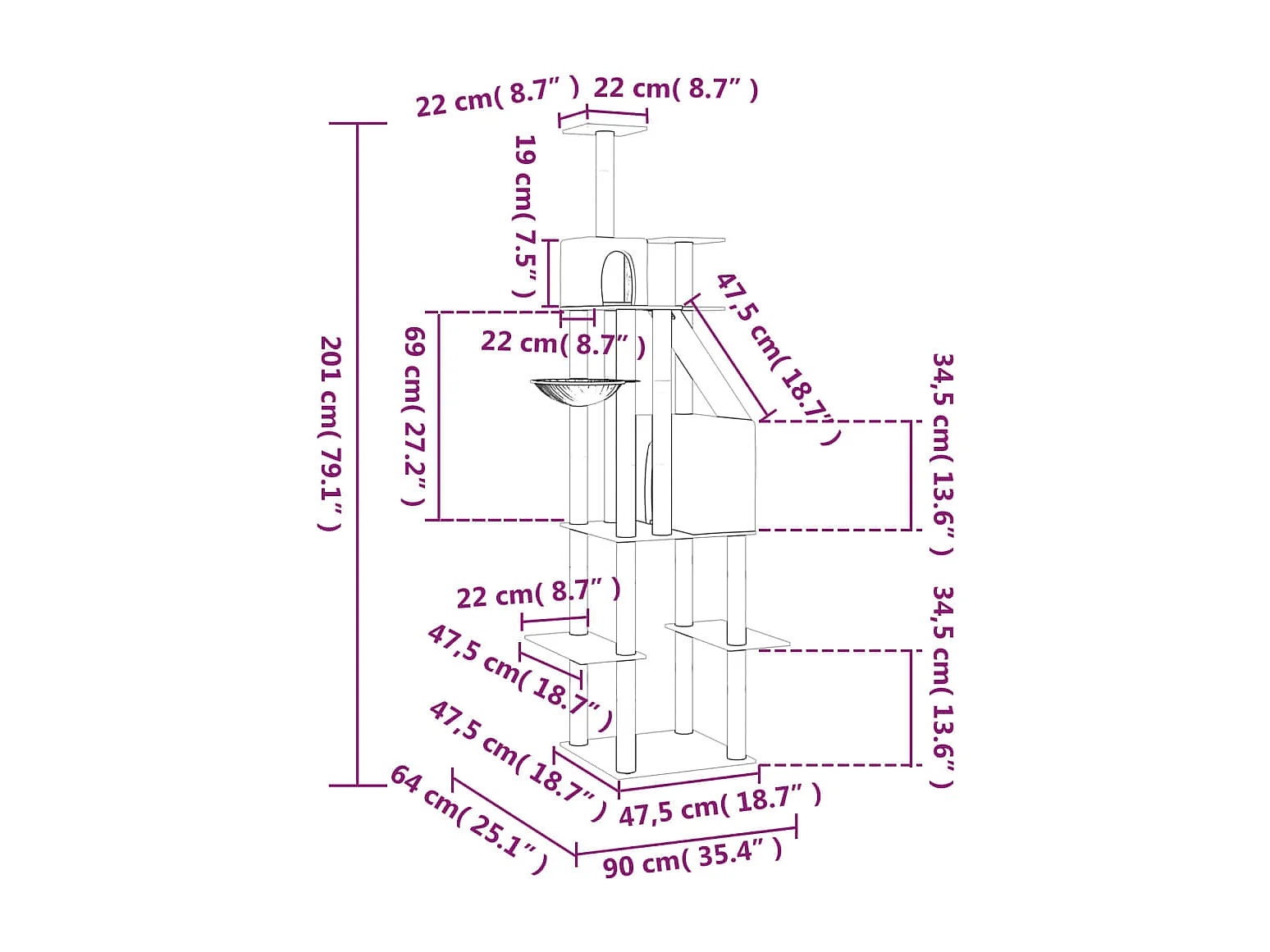 Katzenbaum mit Sisalkratzbäumen Creme 201 cm