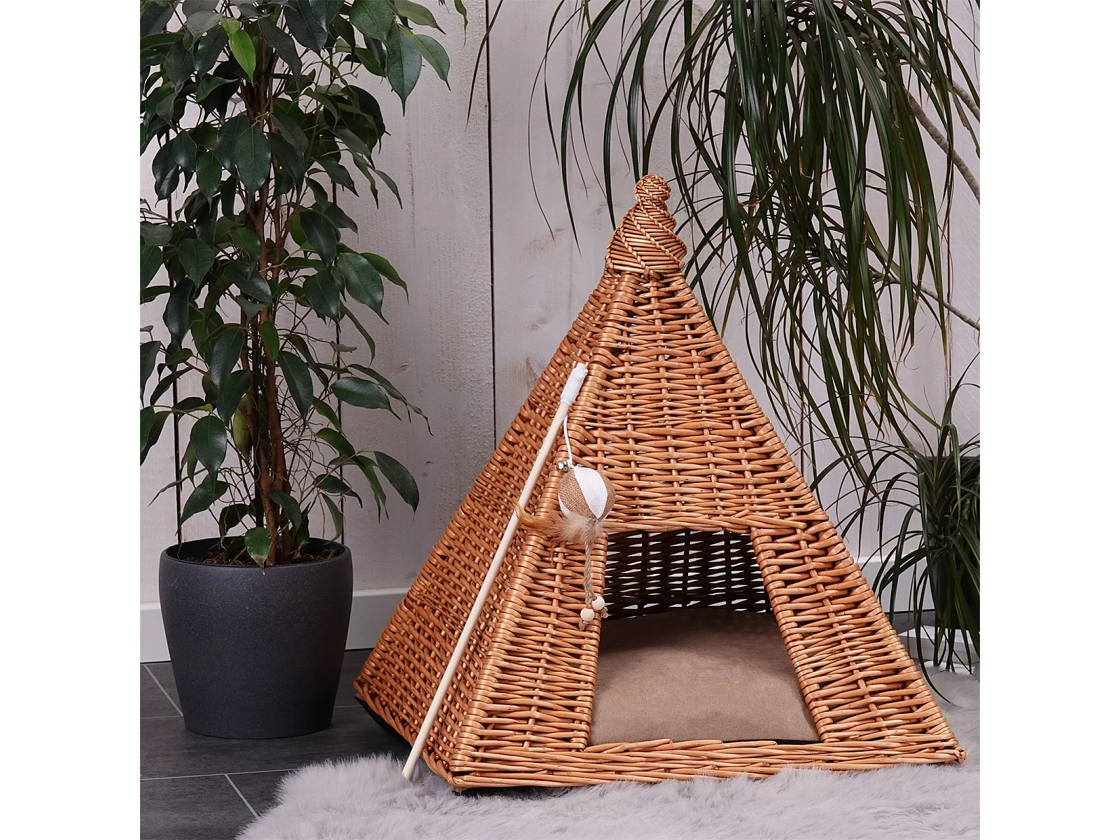 KATZENHÖHLE MIA Weide, Zeltform, mit waschbarem Kissen hellbraun