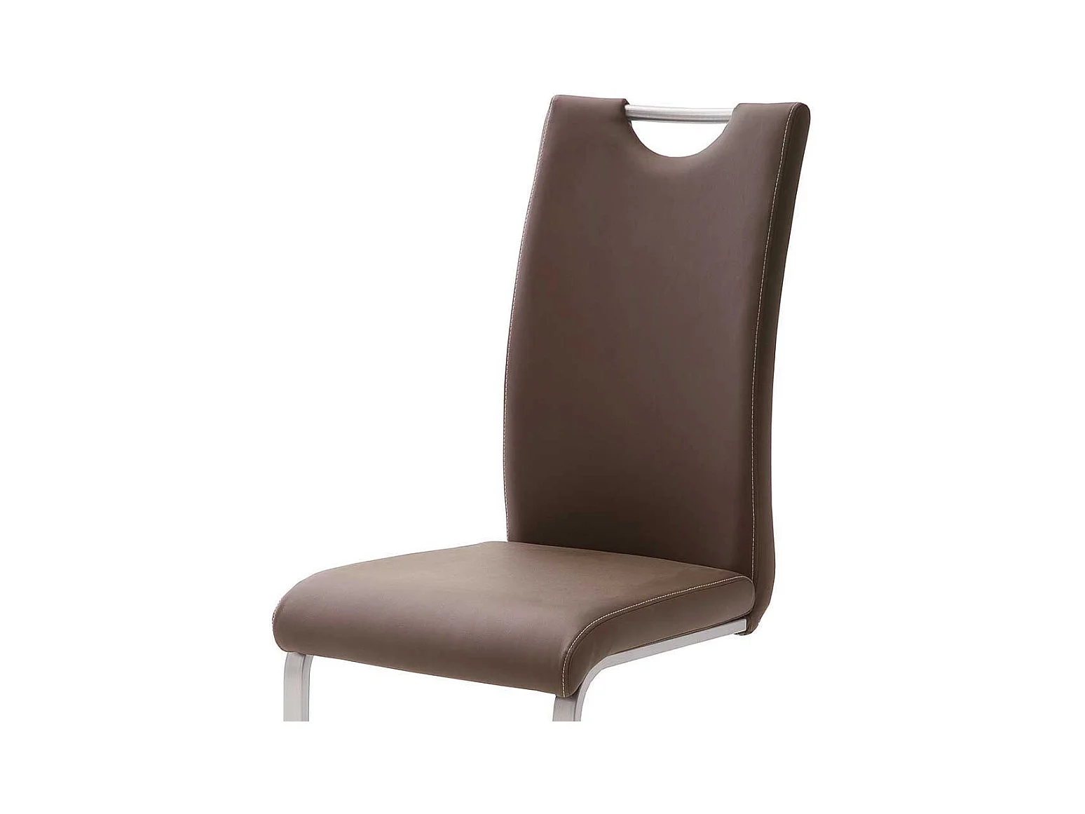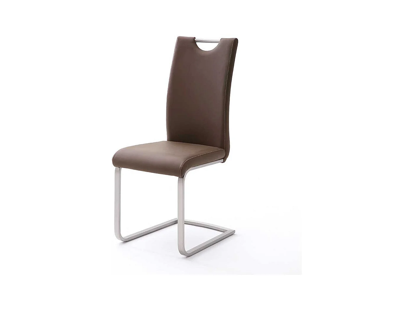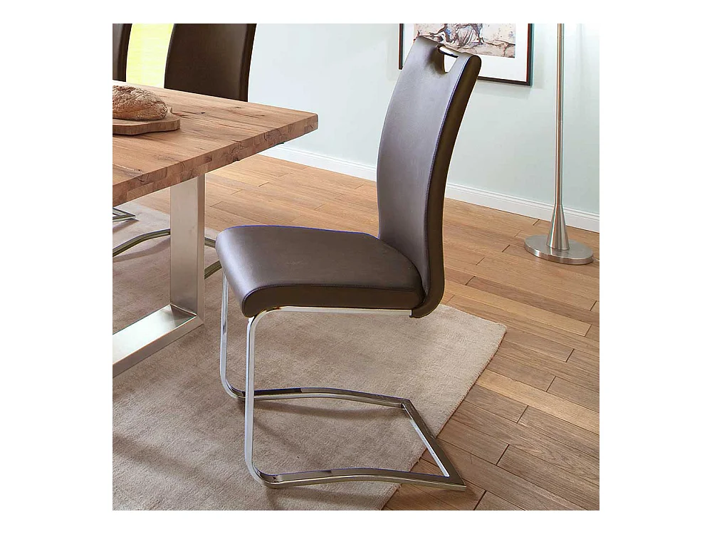 Küchen Freischwingerstuhl in Braun Kunstleder Edelstahl (4er Set)