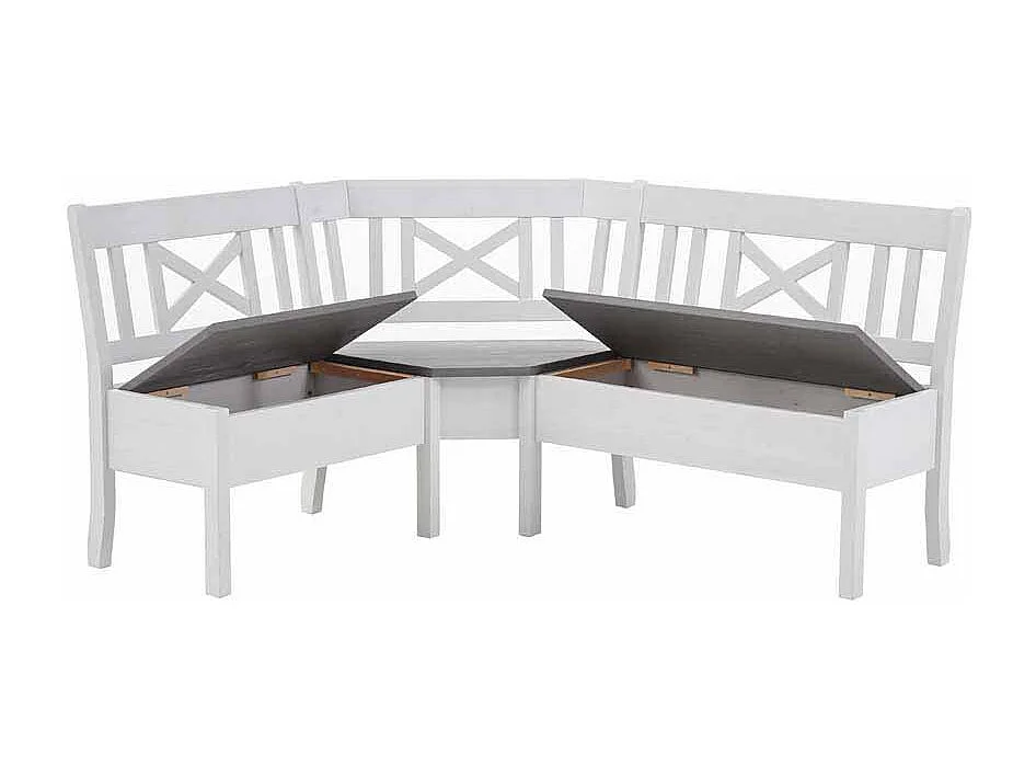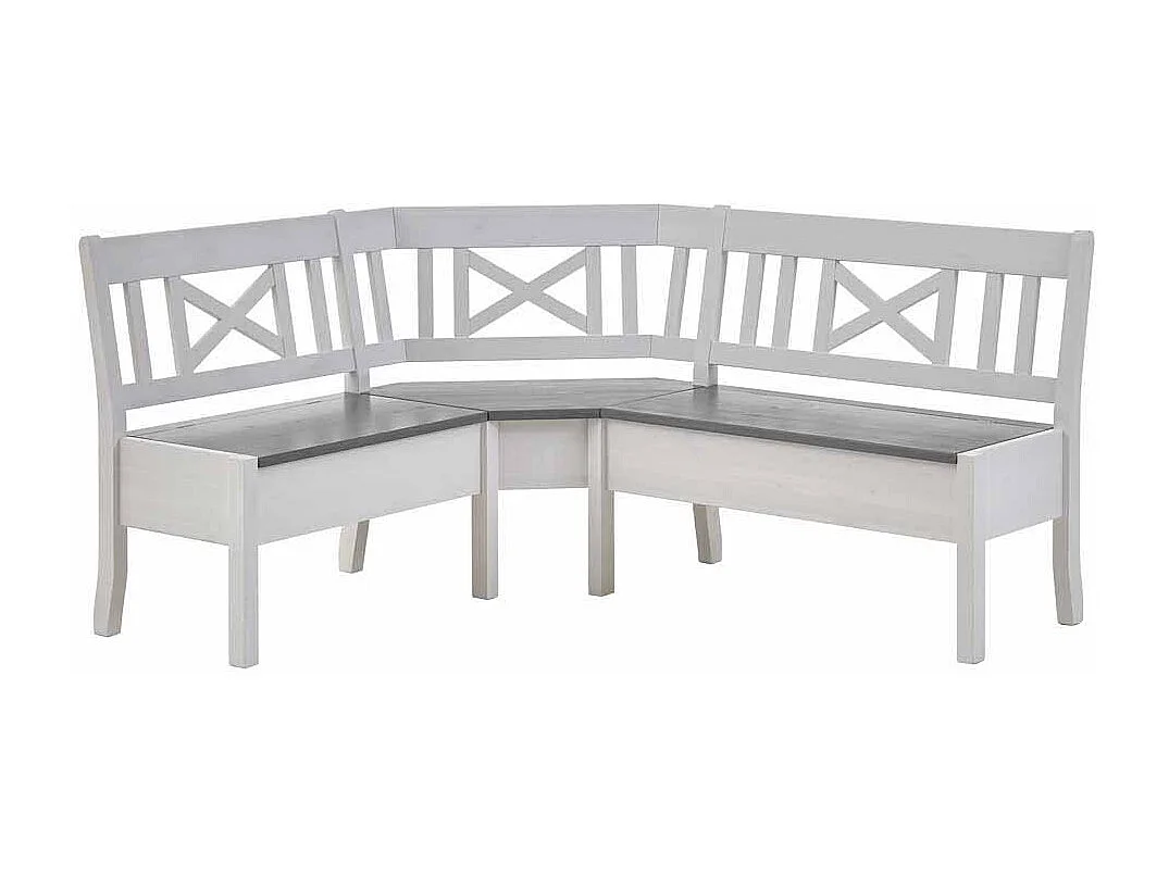 Kücheneckbank in Weiß Grau Kiefer Massivholz