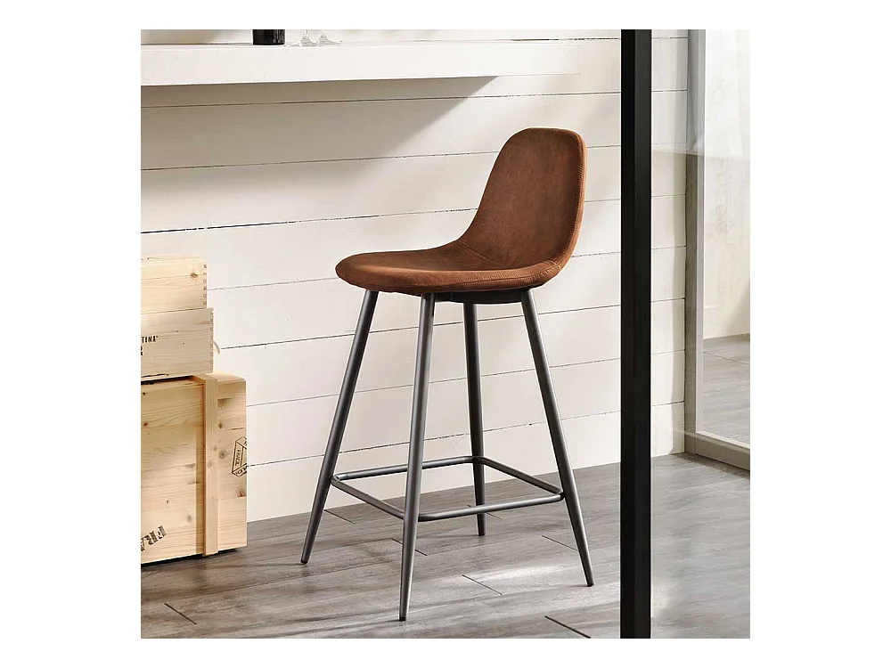Küchenhocker Set in Braun Kunstleder Stahl Anthrazit (2er Set)