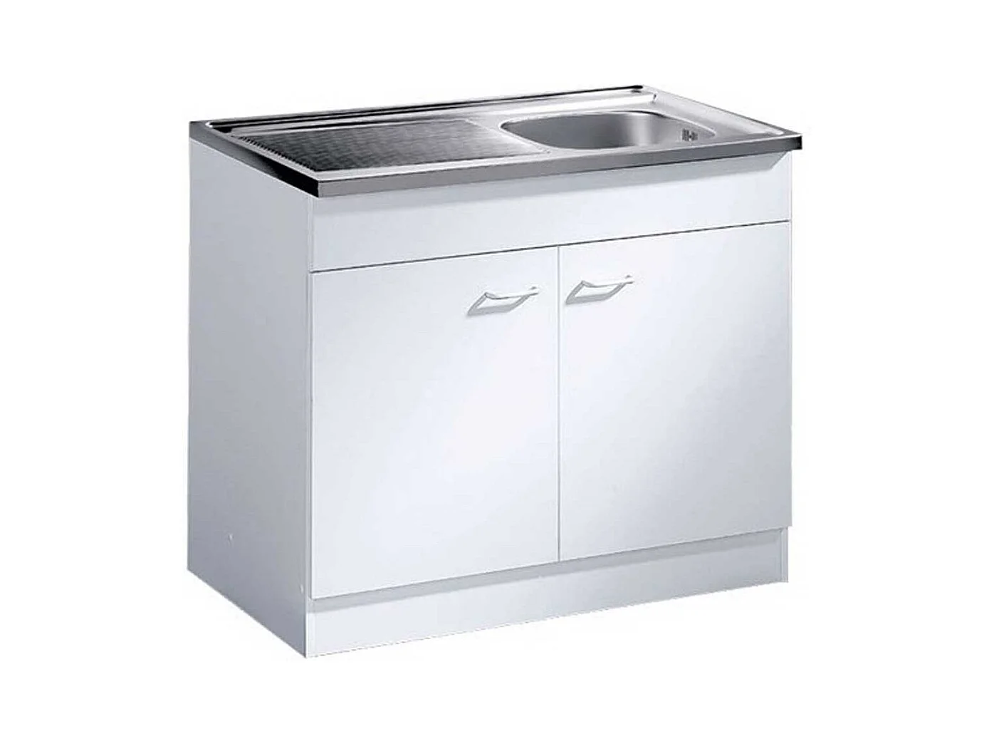 Küchenschrank mit Türen weiß mit Edelstahl-Spüle Made in Germany