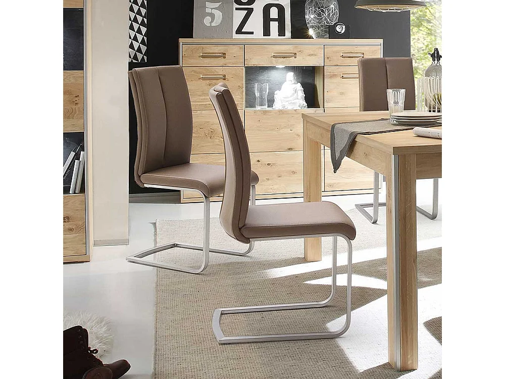 Küchenstuhl Set in Hellbraun Kunstleder Edelstahl (4er Set)