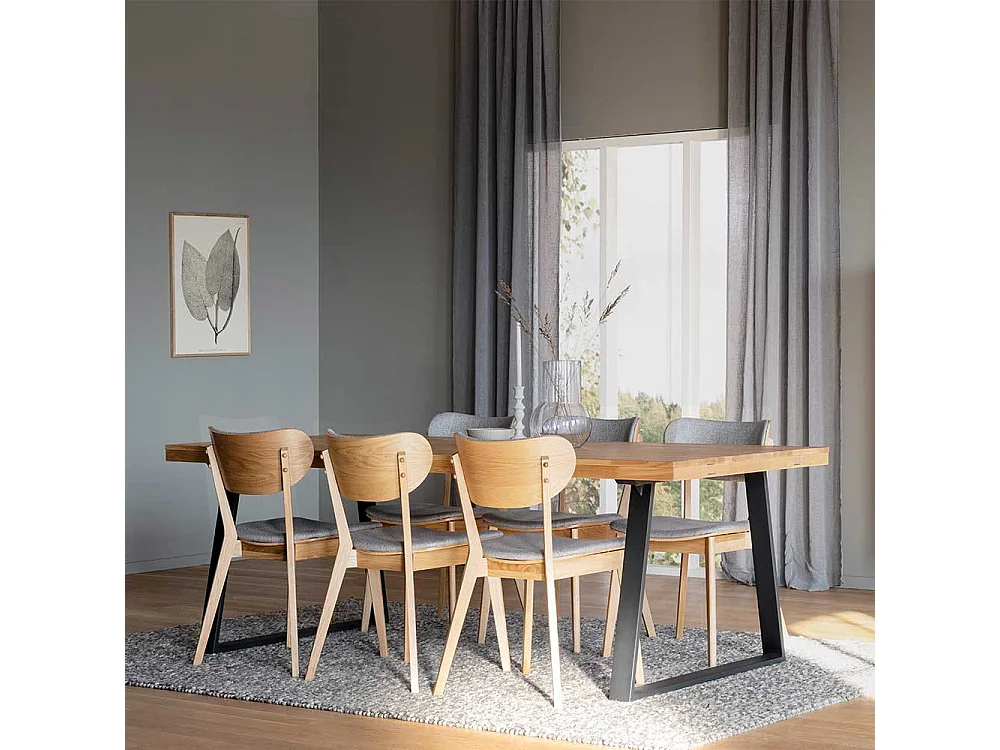 Küchentisch aus Eiche Massivholz und Metall Bügelgestell