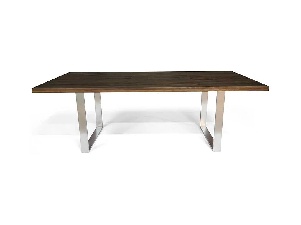 Küchentisch aus Nussbaum Massivholz und Edelstahl 75 cm hoch