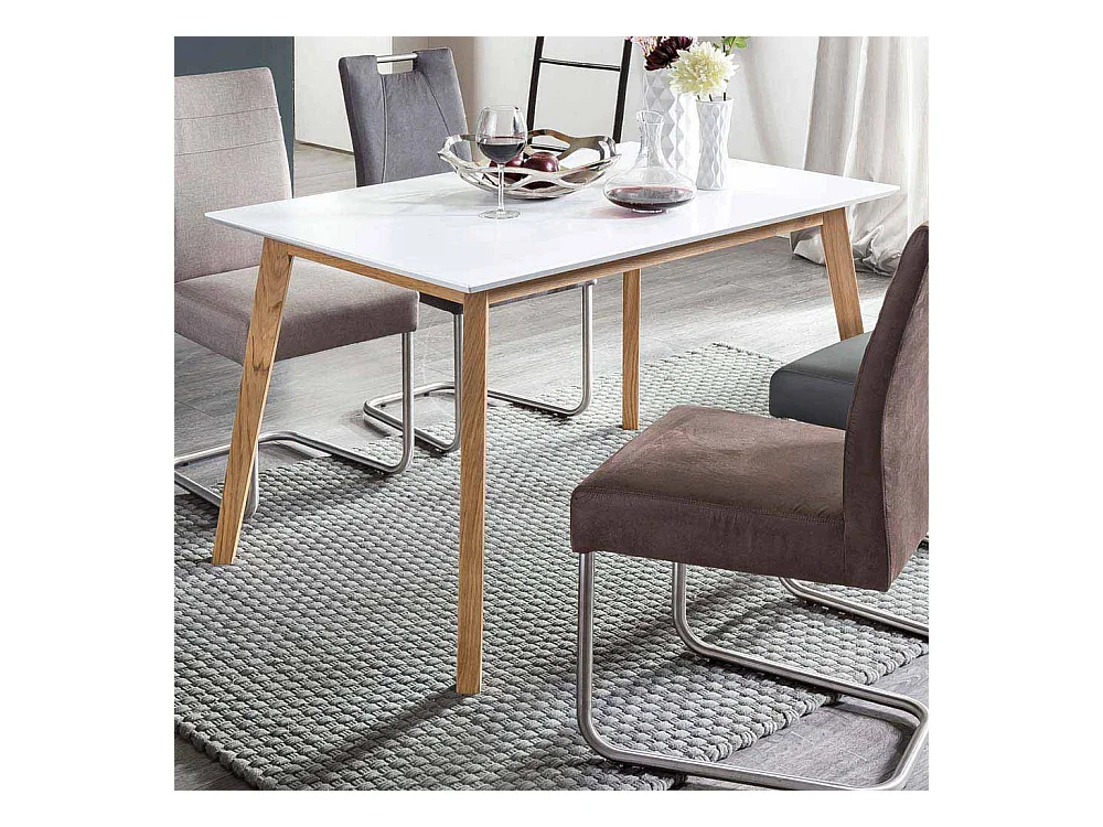 Küchentisch in Weiß Eiche massiv modern