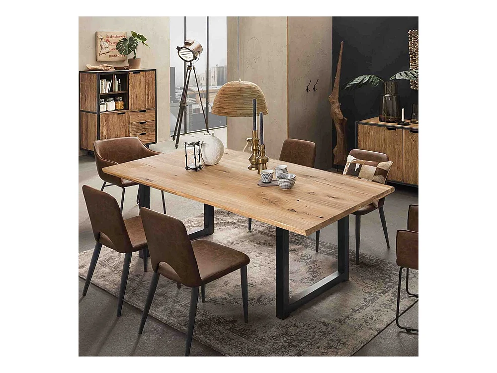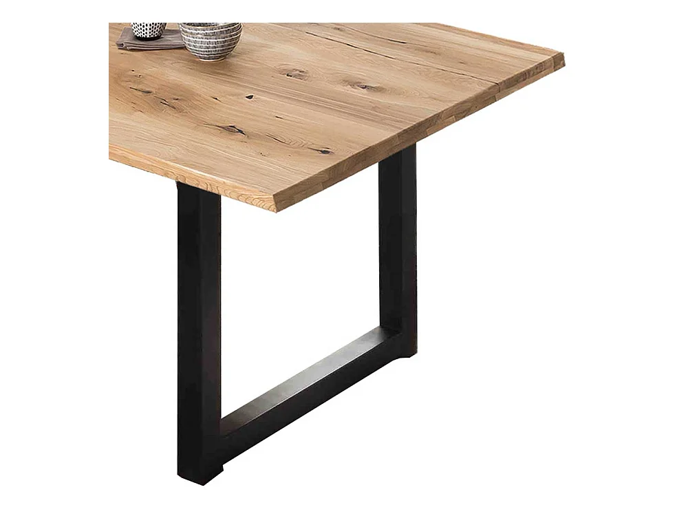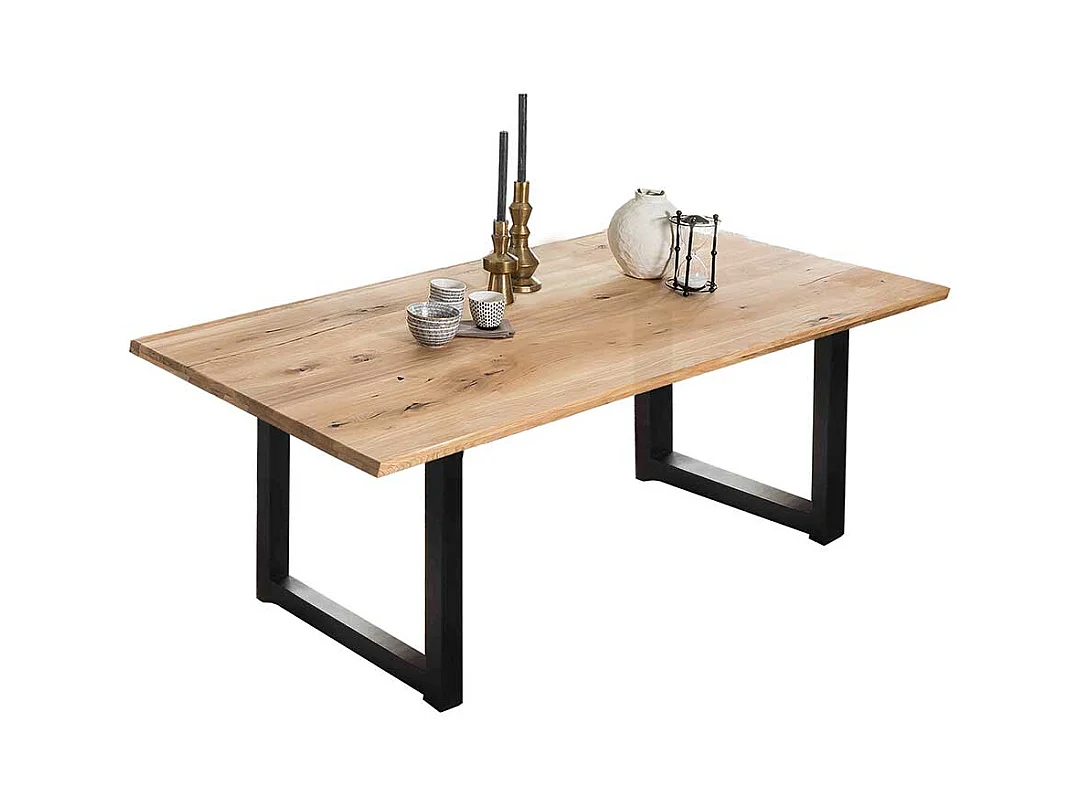 Küchentisch in Wildeiche und Schwarz Metall Bügelgestell