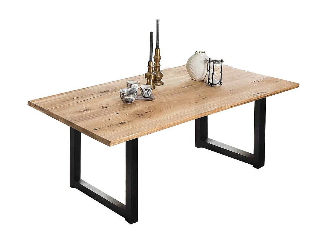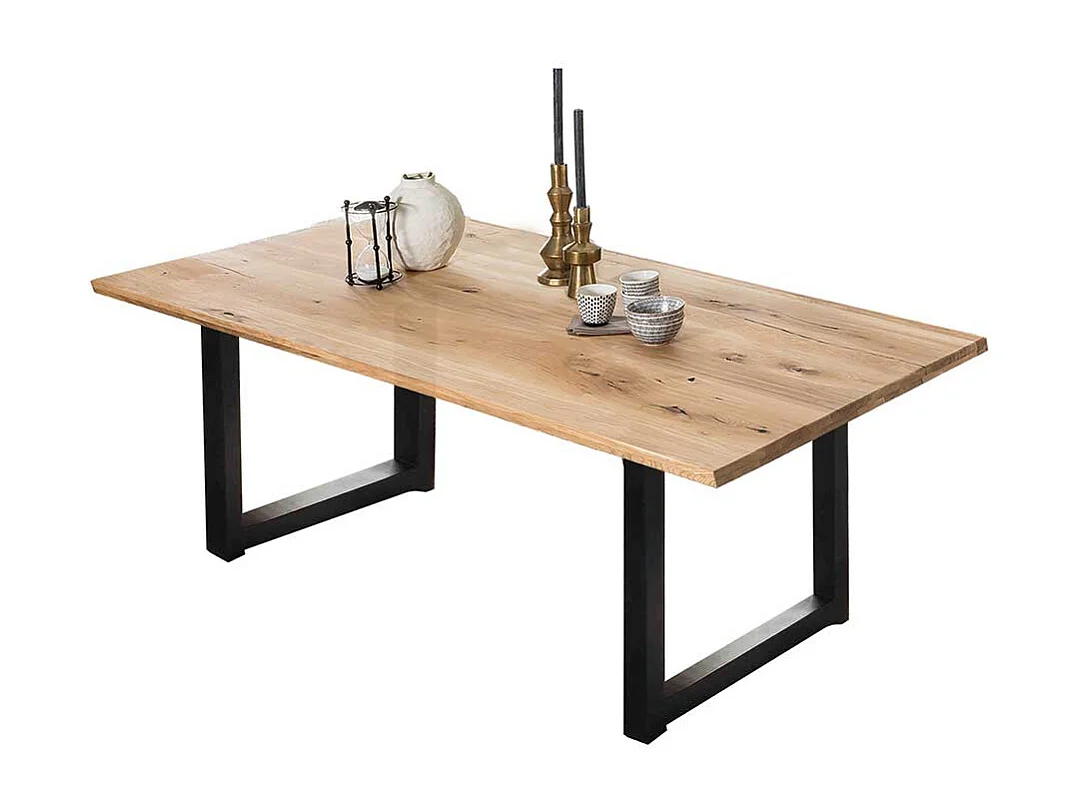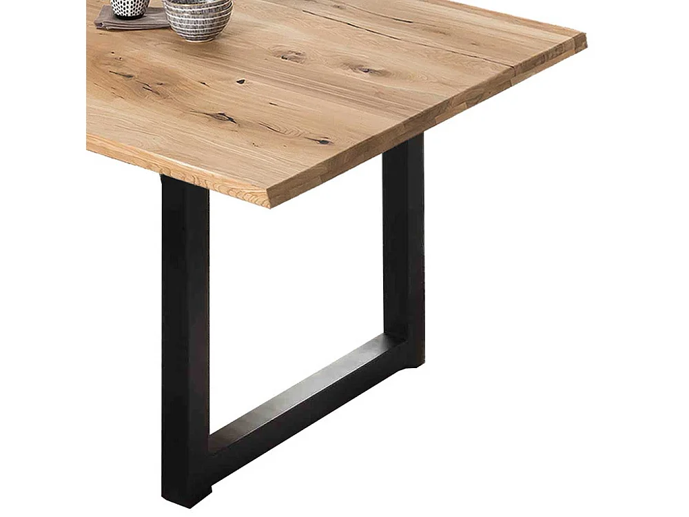 Küchentisch in Wildeiche und Schwarz Metall Bügelgestell