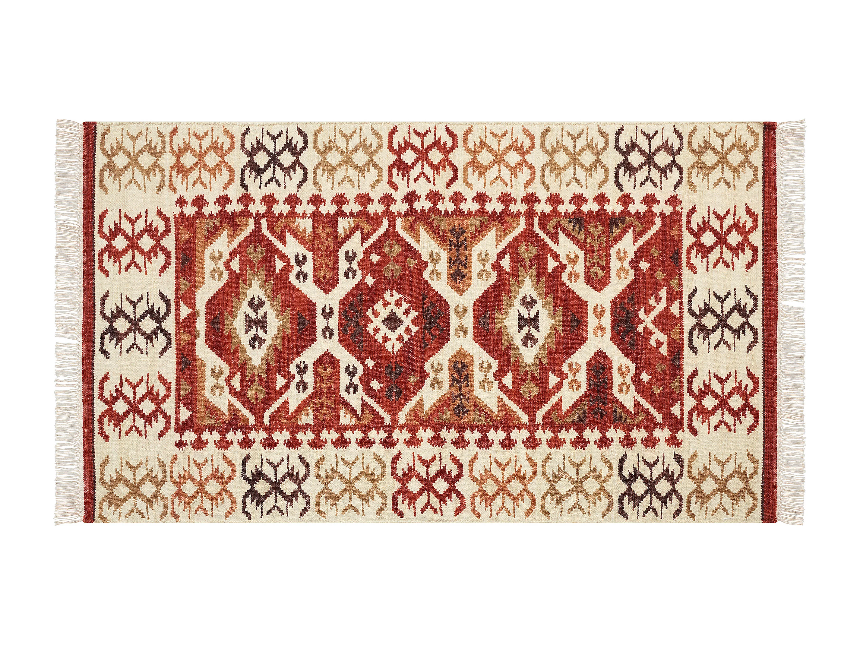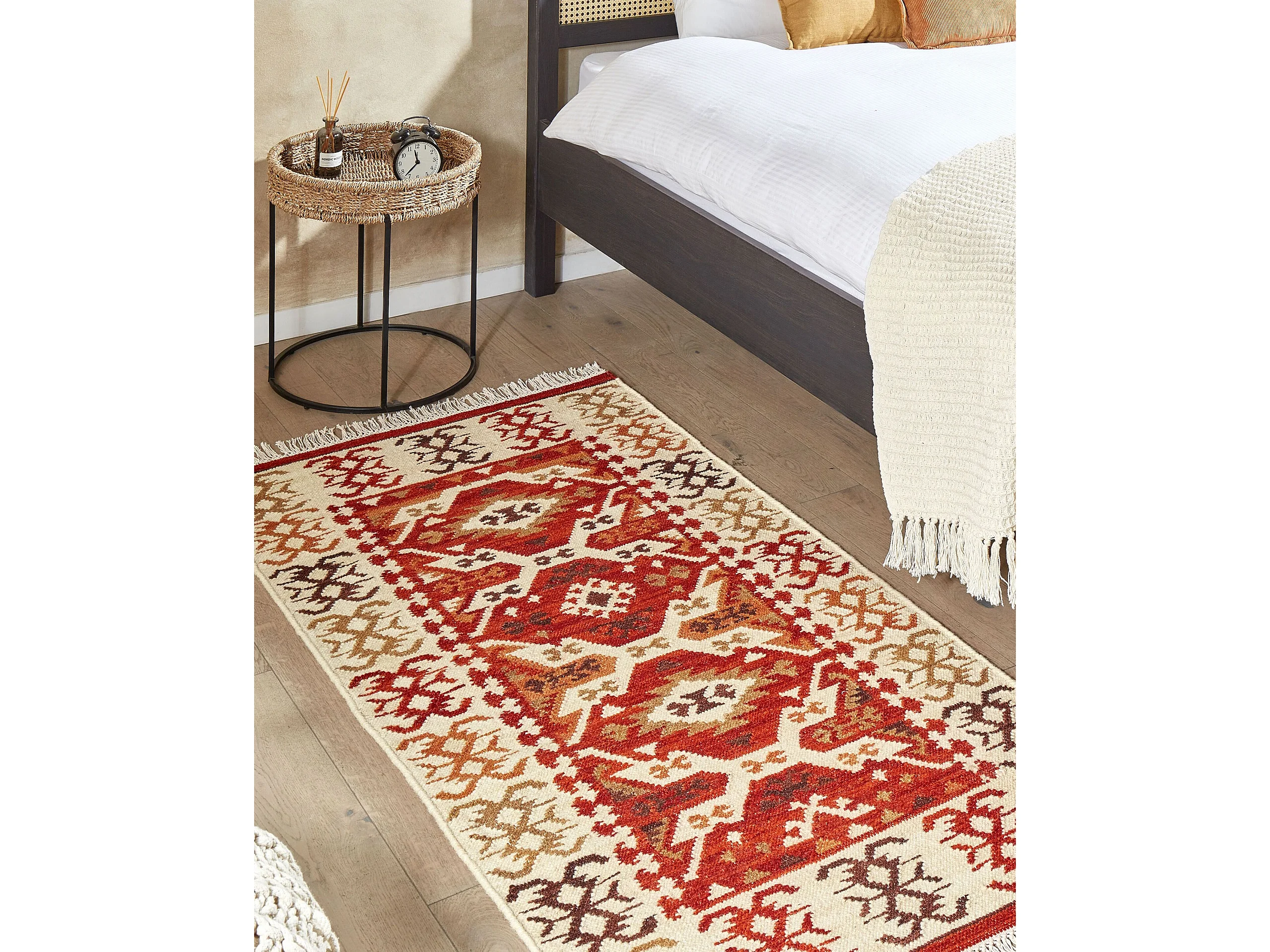 Kelim-Teppich Wolle bunt 80 x 150 cm handgewebt geometrisches Muster Voskevaz