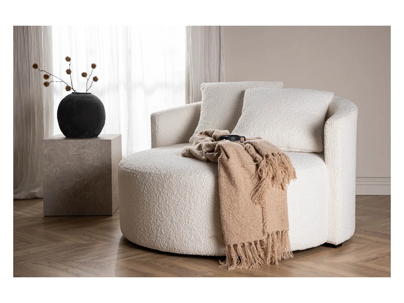 Kelso Sofa Ø116cm 2 Personen teddy weiß.