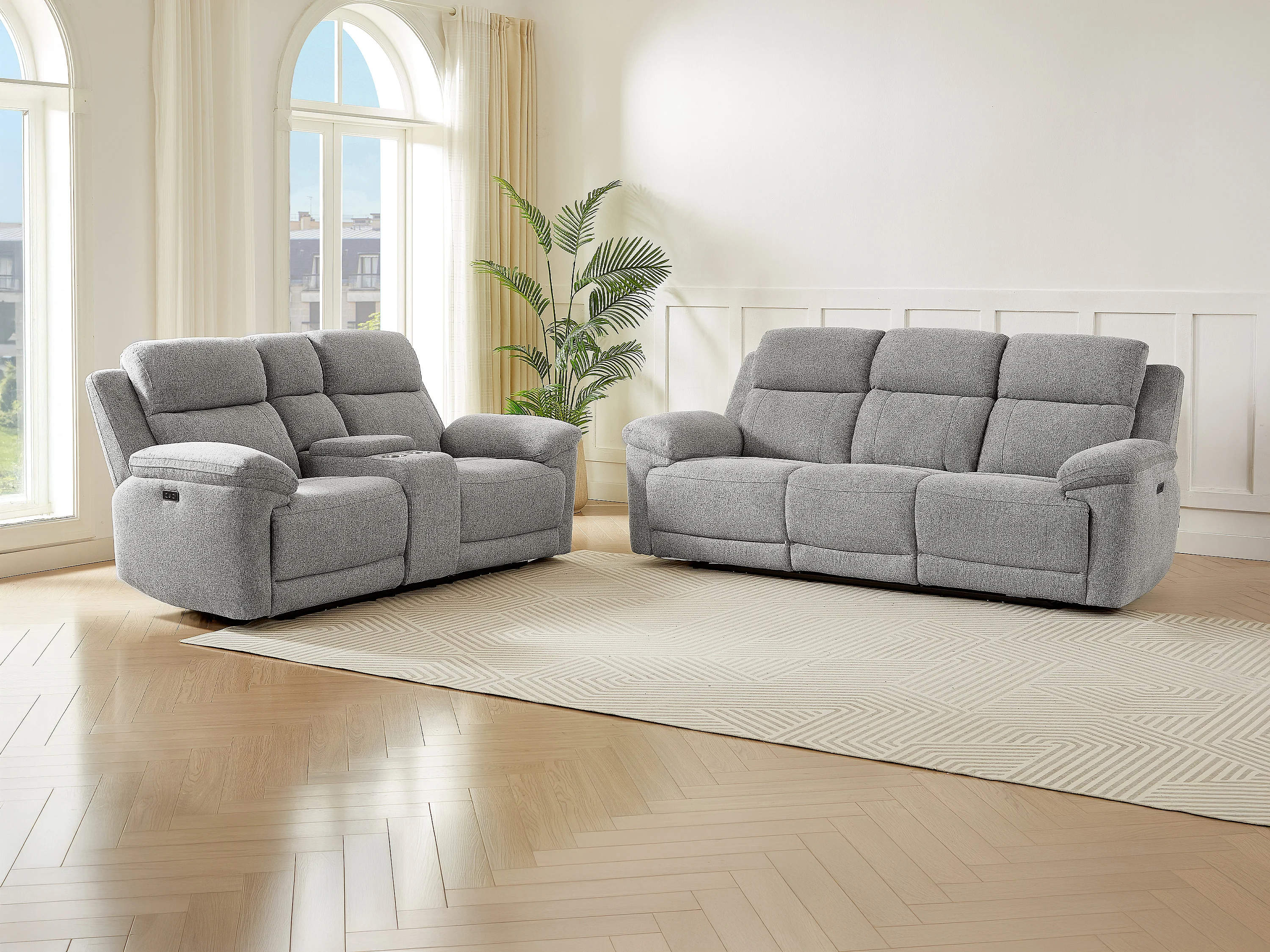 Relaxsofa 3-Sitzer & 2-Sitzer elektrisch – melierter Stoff – Grau – KELUNO