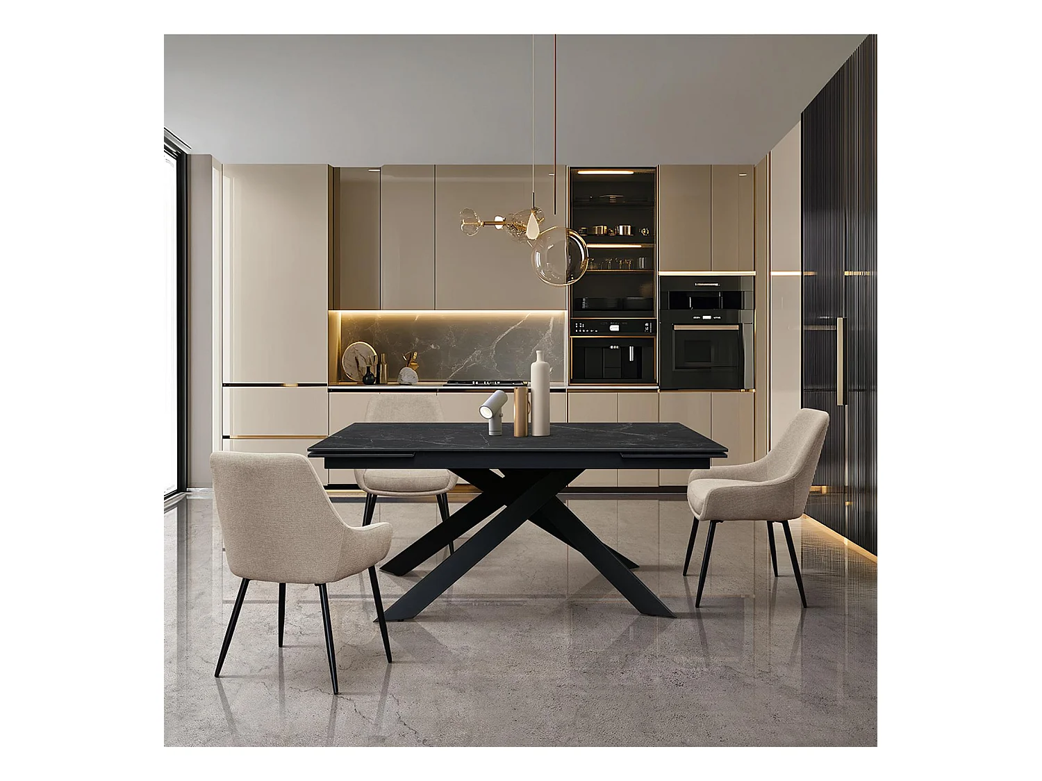 Keramiktisch, schwarzer Marmoreffekt und schwarzes Metallgestell, 160x90-240x90 cm – CALVI