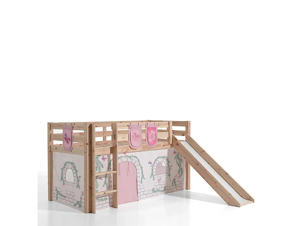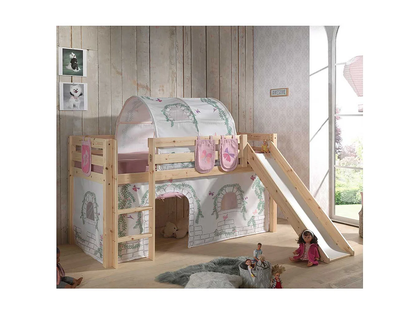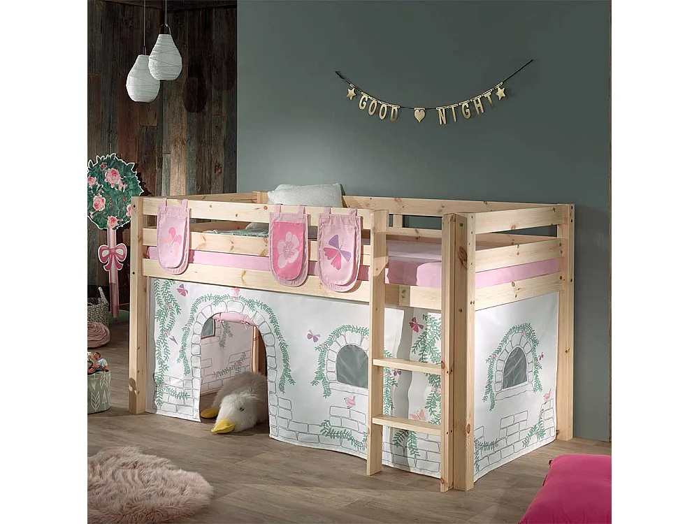 Kiefer Halbhochbett massiv lackiert Vorhang