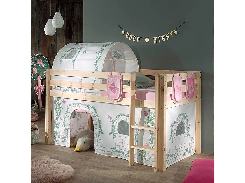 Kiefer Halbhochbett massiv lackiert Vorhang