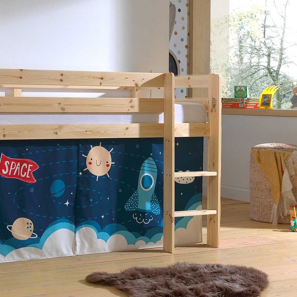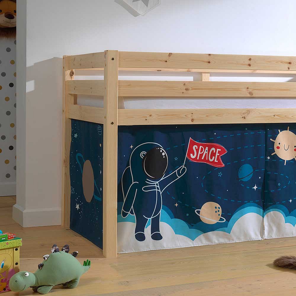 Kiefer Halbhochbett mit Vorhang Set Motiv Astronaut