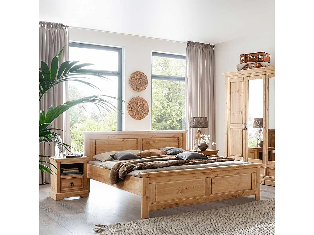Kiefernholz Bett in Eichefarben gebeizt und geölt Nachtkommoden (dreiteilig)