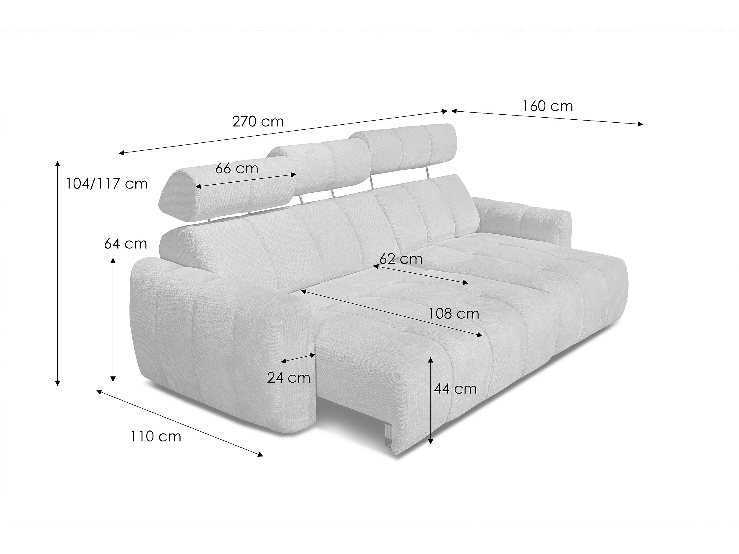 KIMI 3-Sitzer-Ecksofa, ausziehbarer Sitz, verstellbare Kopfstützen, beige
