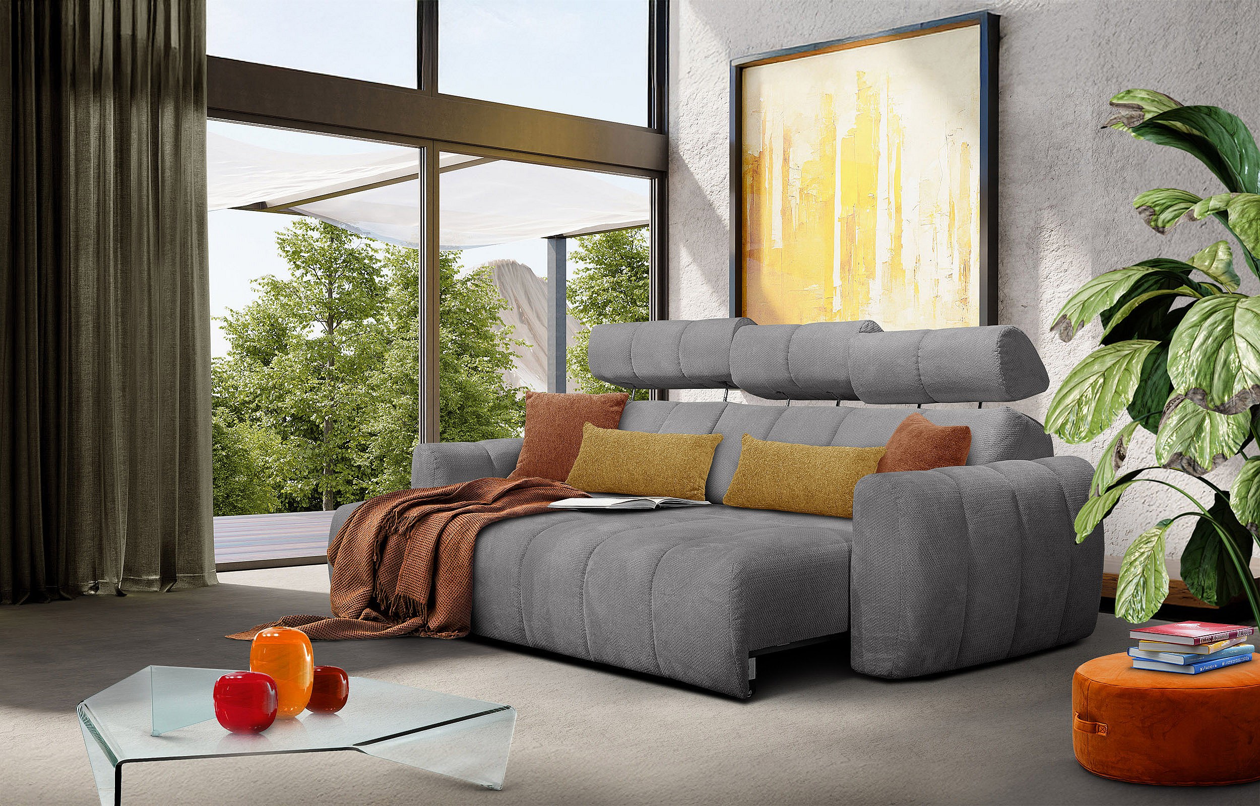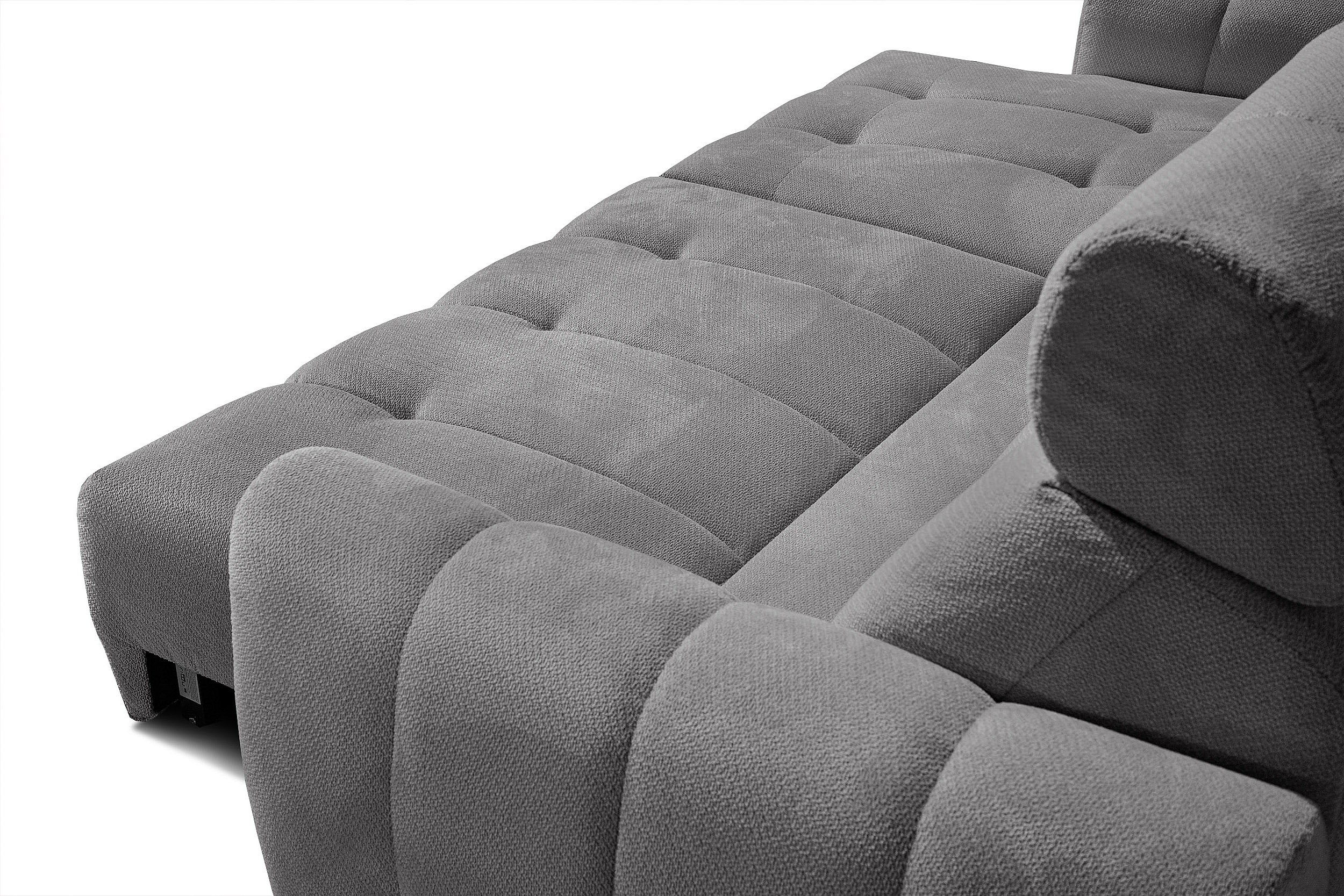 KIMI 3-Sitzer-Ecksofa, links, ausziehbarer Sitz, verstellbare Kopfstützen, grau