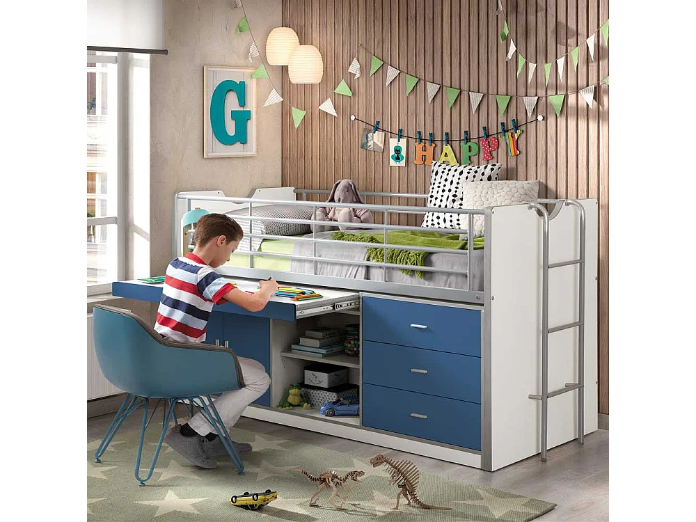 Kinder-Etagenbett mit Schreibtisch Stauraum