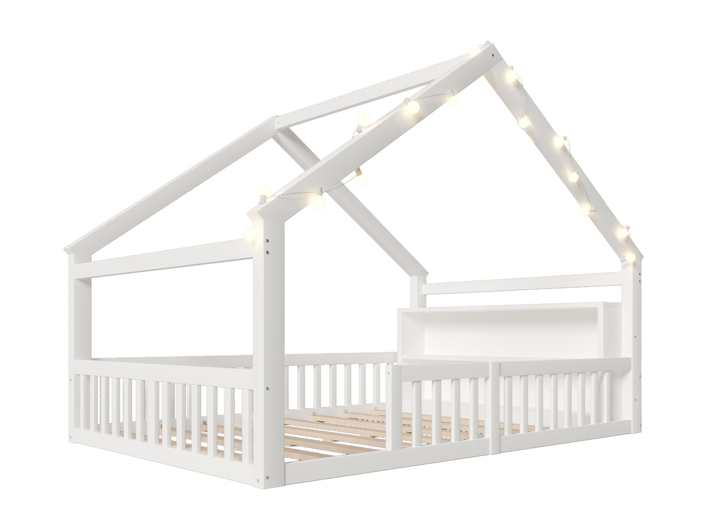 Kinder-Flachbett - 140 x 190 cm - mit Absturzsicherung - minimalistischer Stil - Holz - weiß