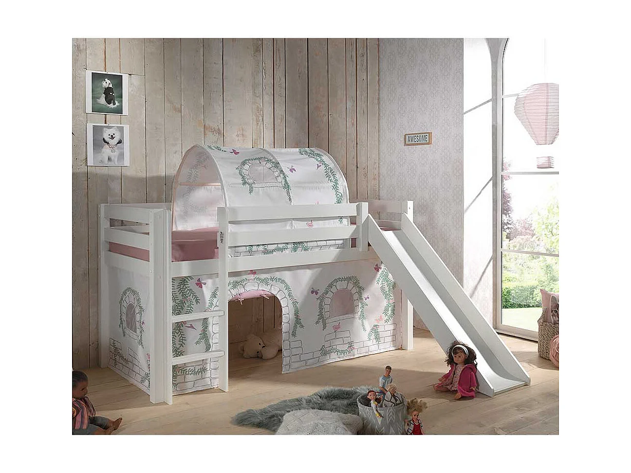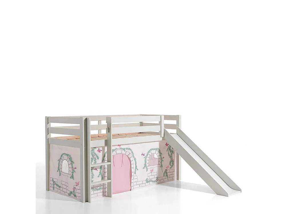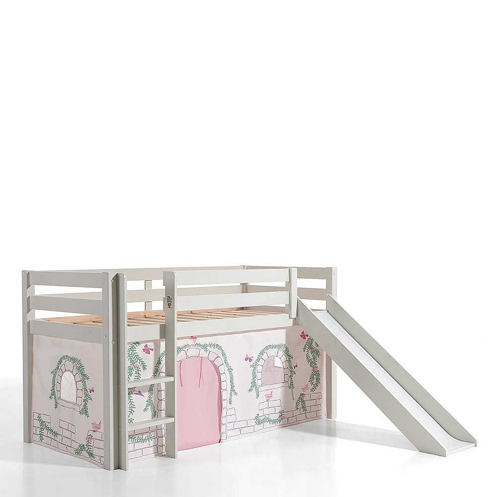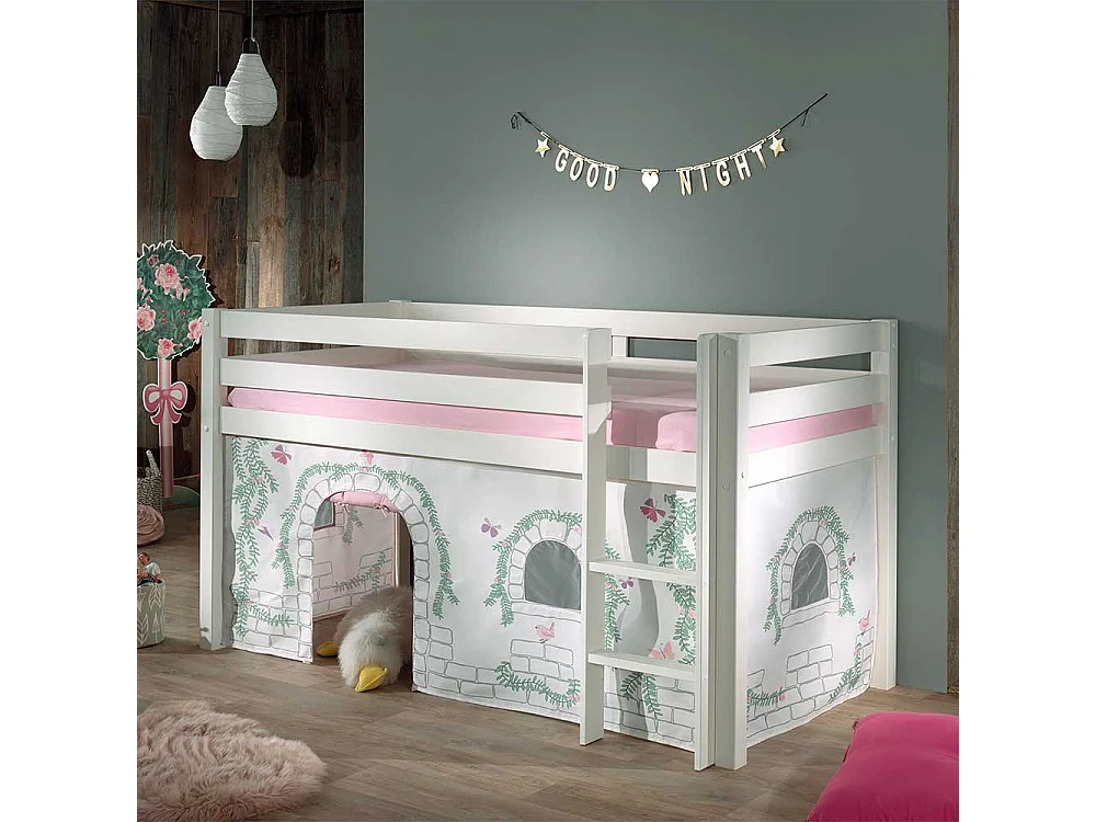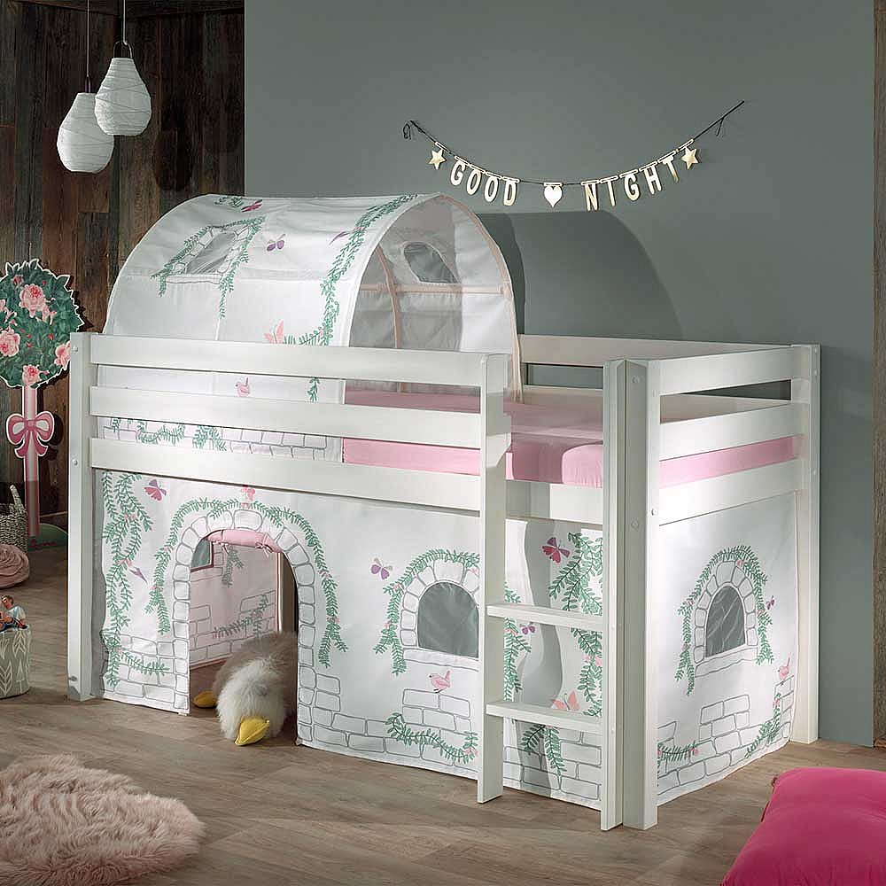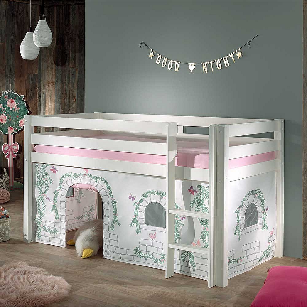 Kinder Halbhochbett in Weiß Kiefer Massivholz