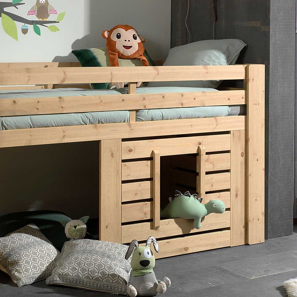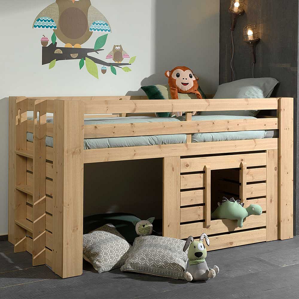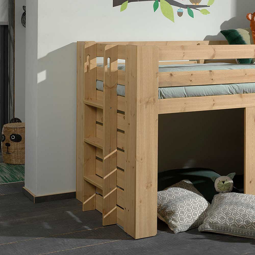 Kinder Hochbett mit Leiter aus Kiefer Massivholz lackiert mit Leiter