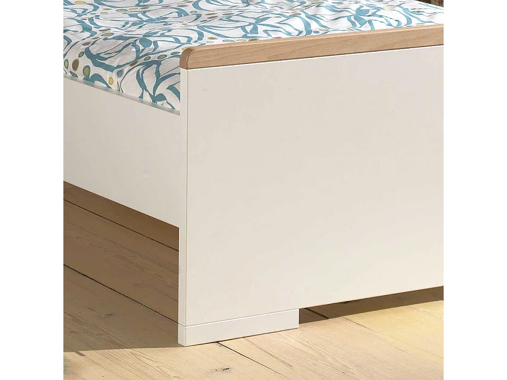 Kinder Jugendbett in Weiß und Buche Nachttisch (zweiteilig)
