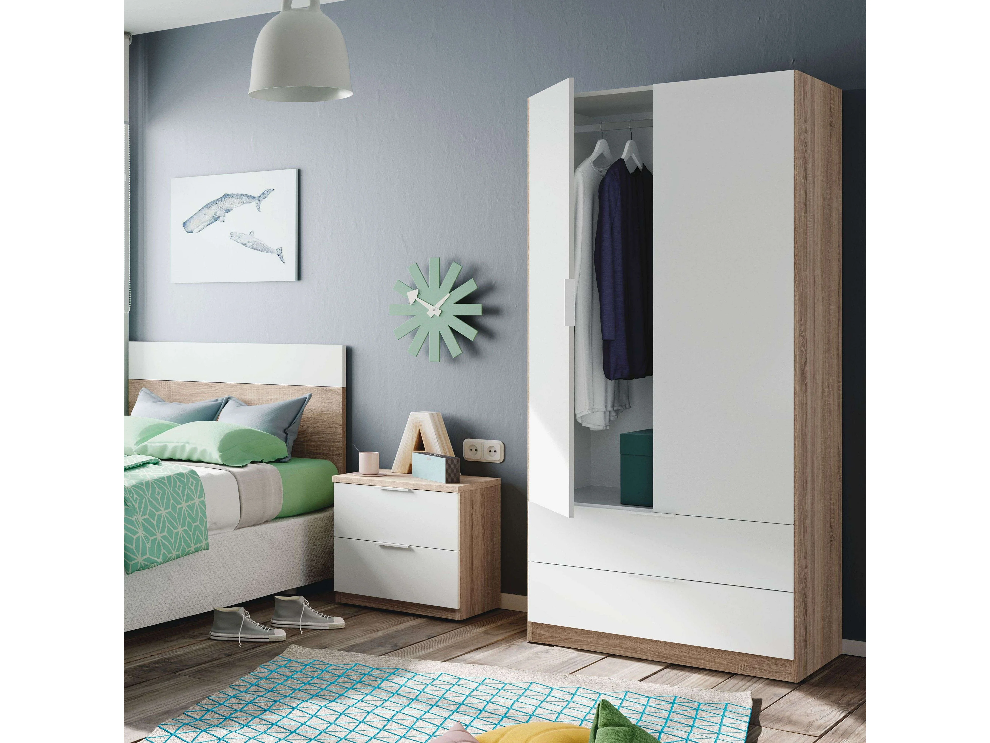 Kinder-/Jugendschrank Luca 2 Türen 2 Schubladen Kanadische Eiche und Mattweiß 180x82x52 cm