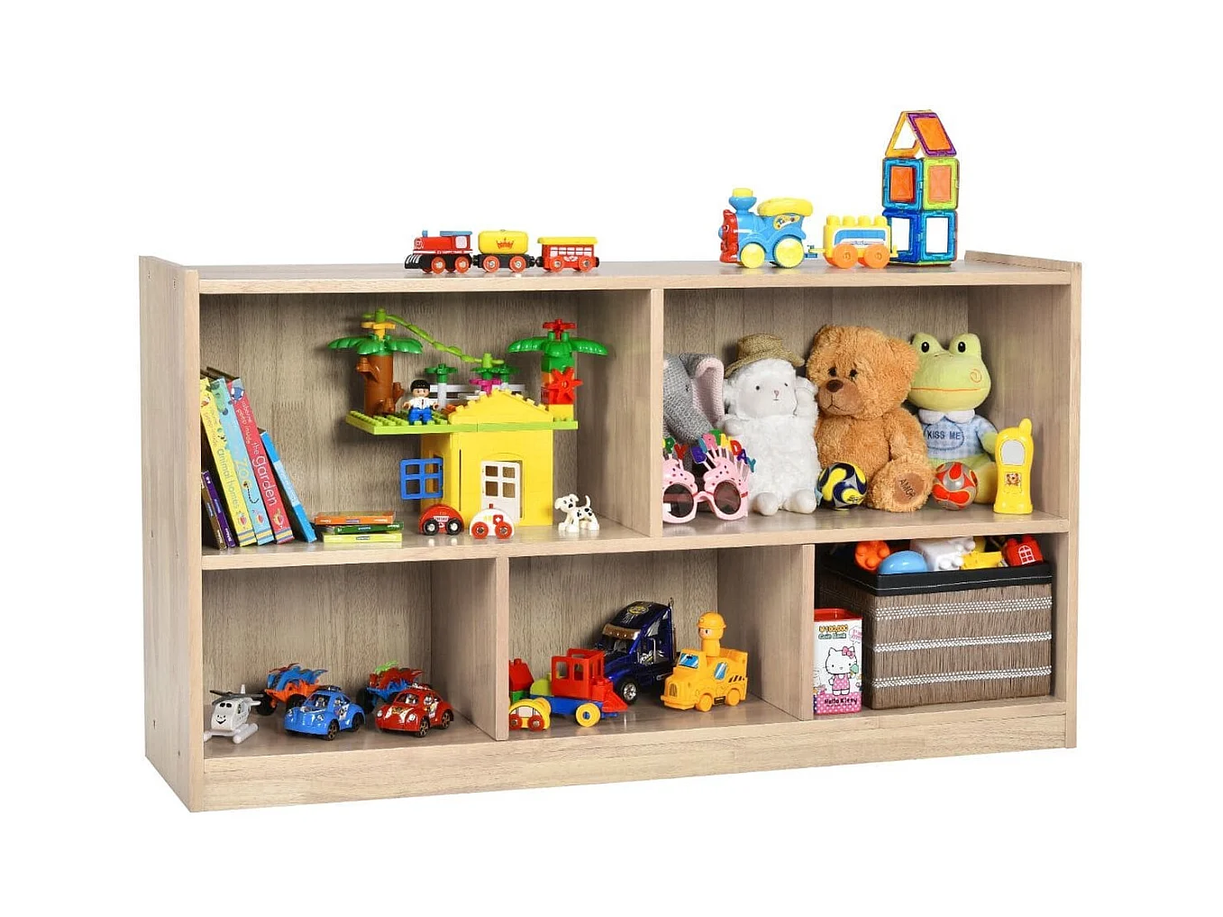 Spielzeugschrank aus Holz Kinderregal mit 5 Fächern 111 x 30 x 61,5 cm Natur