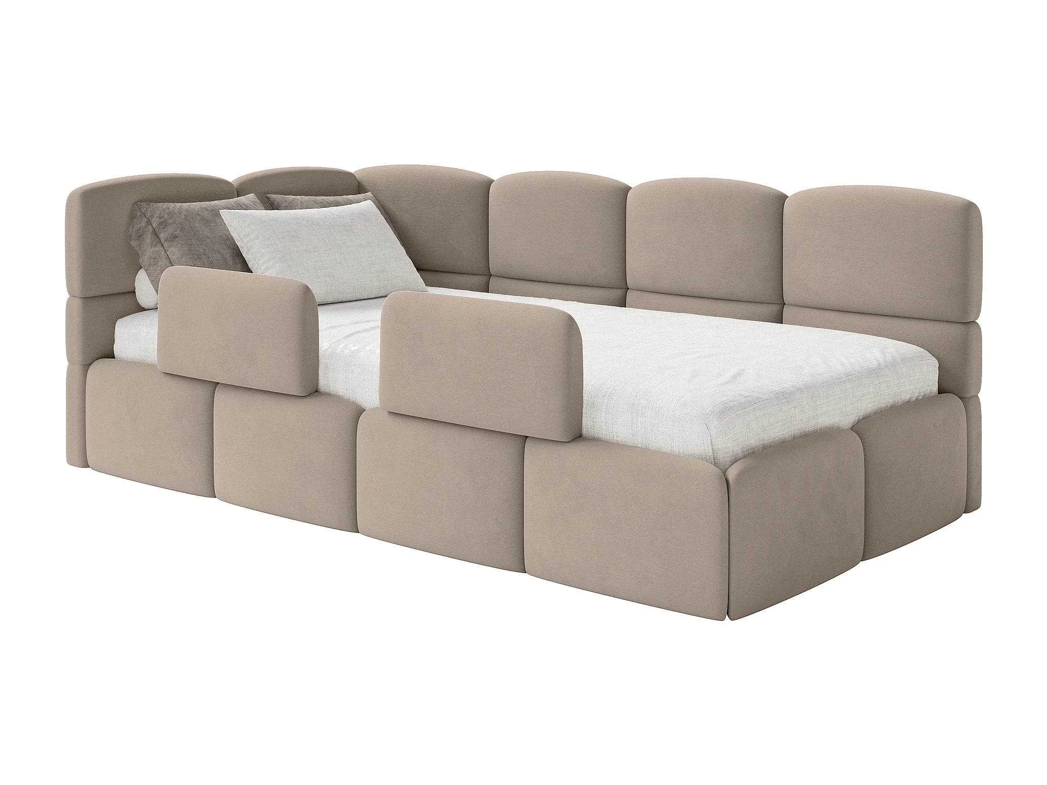 Kinderbett 120x200 Kopfteil links – Matratze & Stauraum – Samt Beige – CLOUDY
