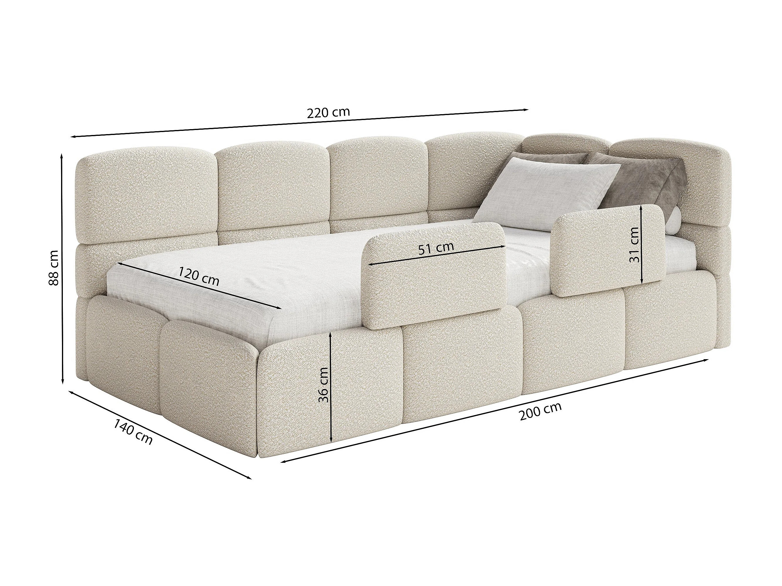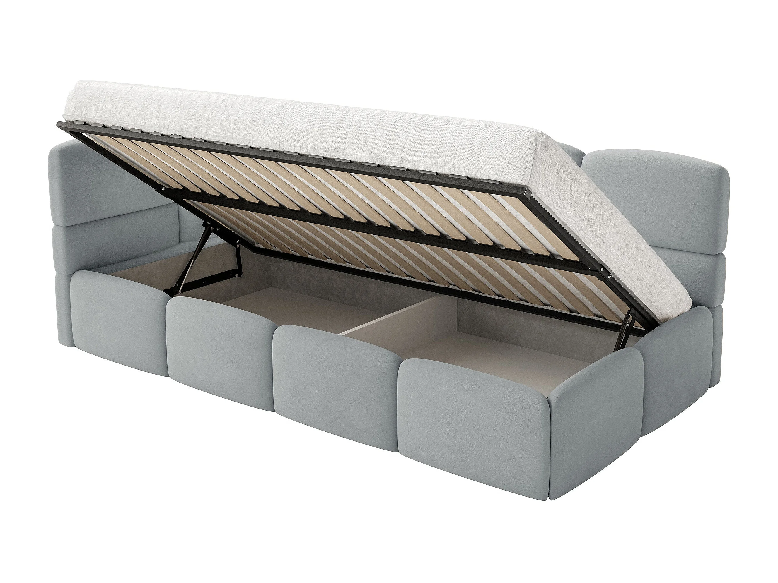 Kinderbett 120x200 Kopfteil links – Matratze & Stauraum – Samt Grau – CLOUDY