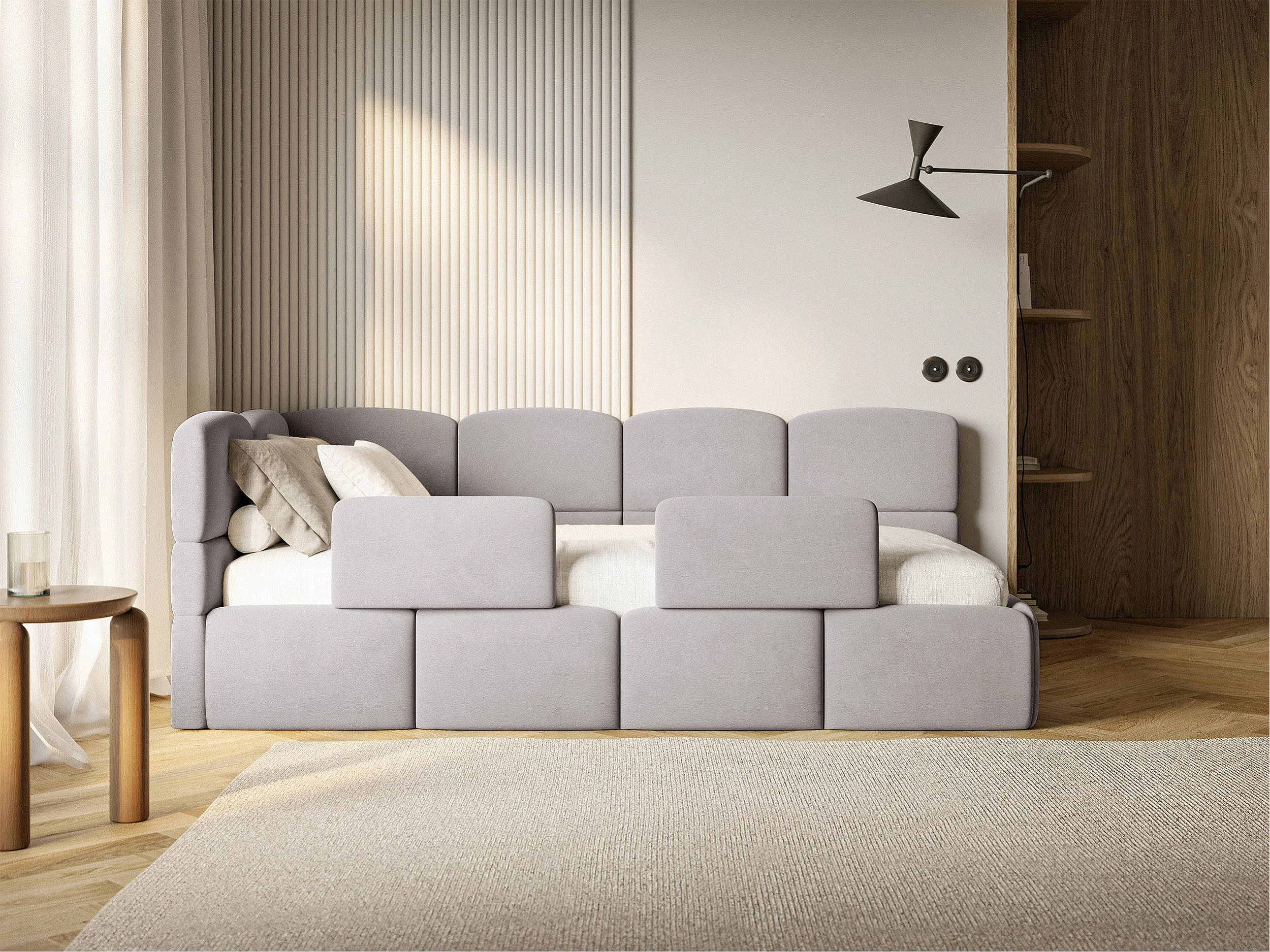 Kinderbett 120x200 Kopfteil links – Matratze & Stauraum – Samt Hellgrau – CLOUDY