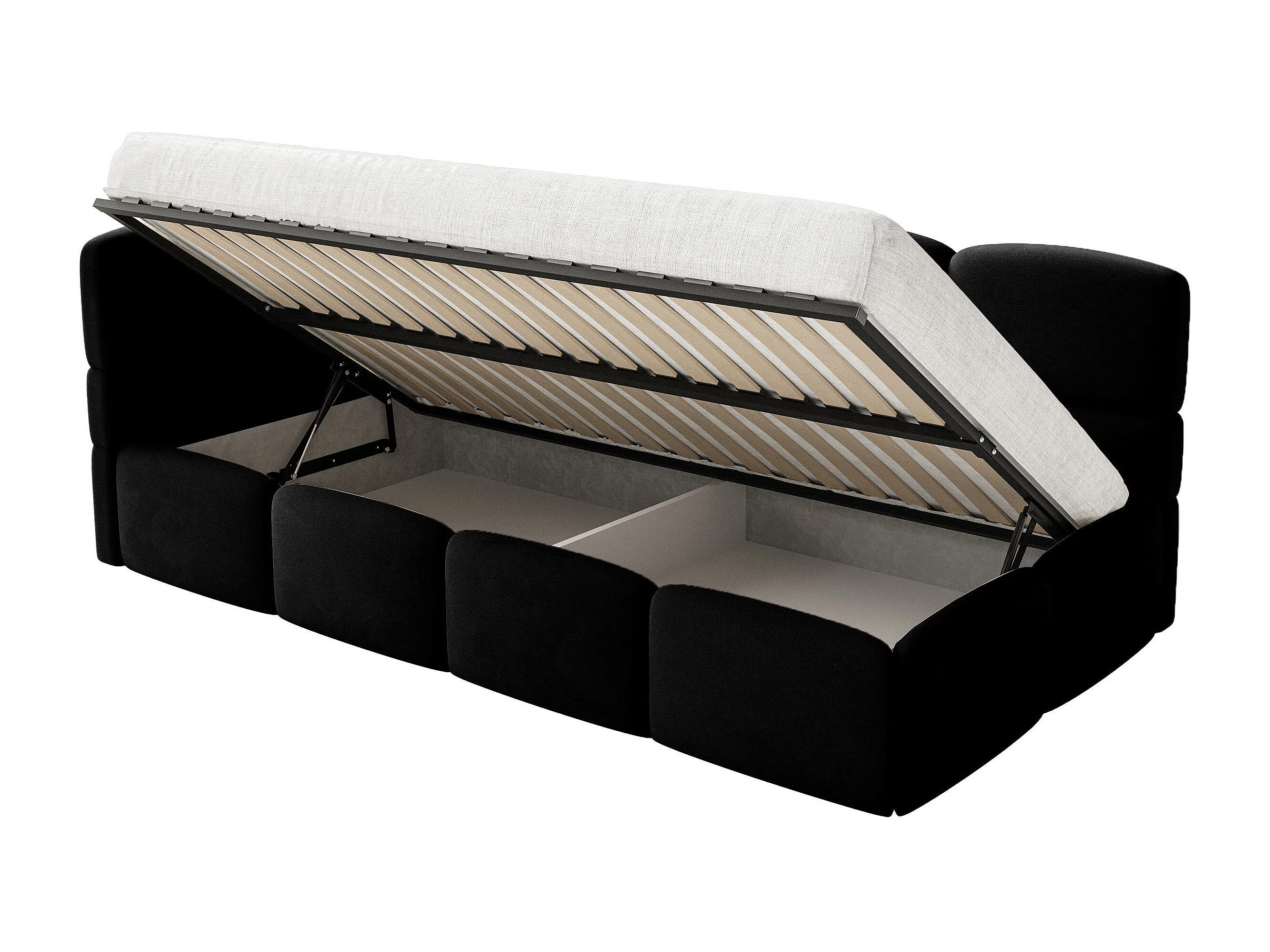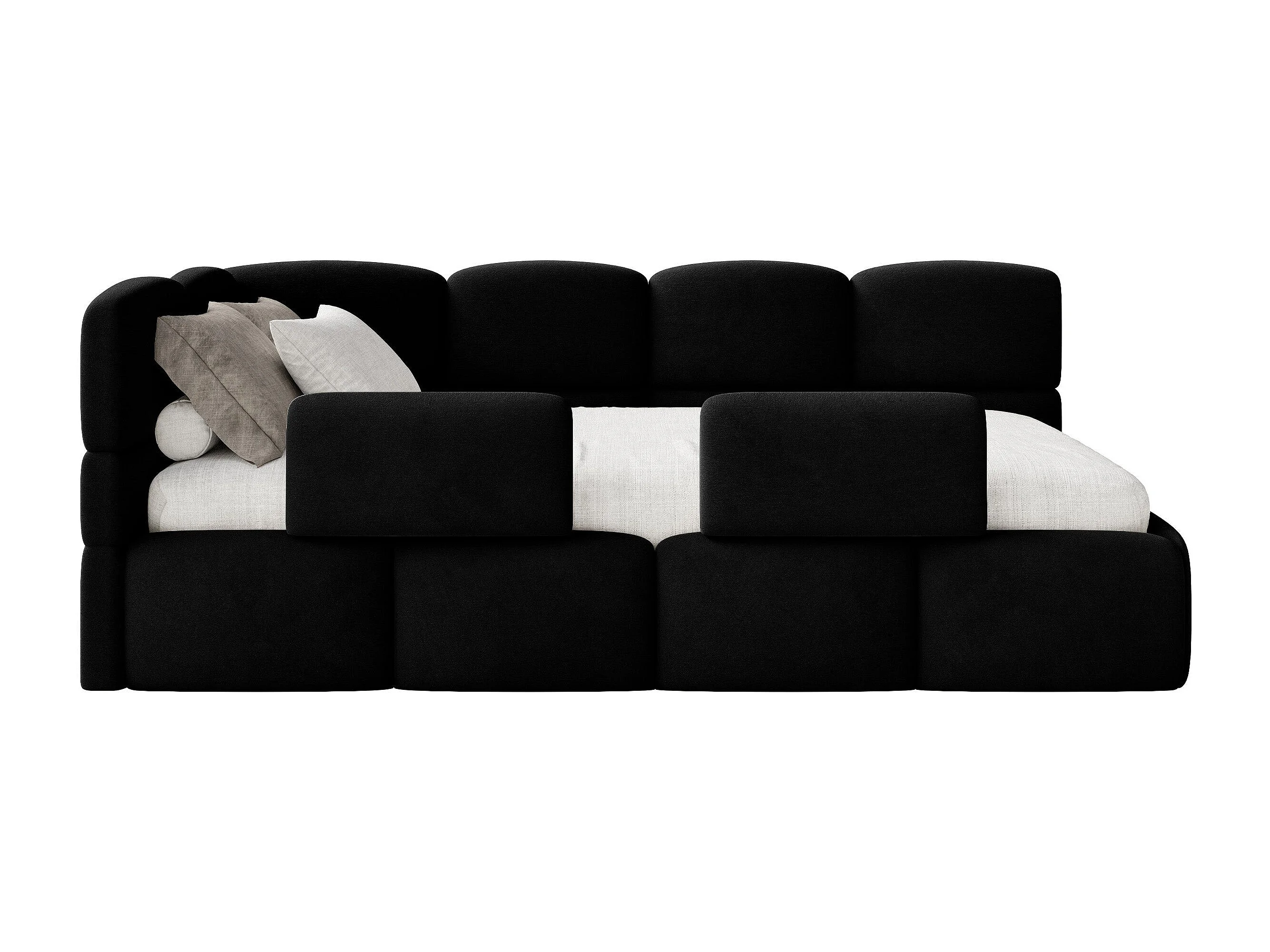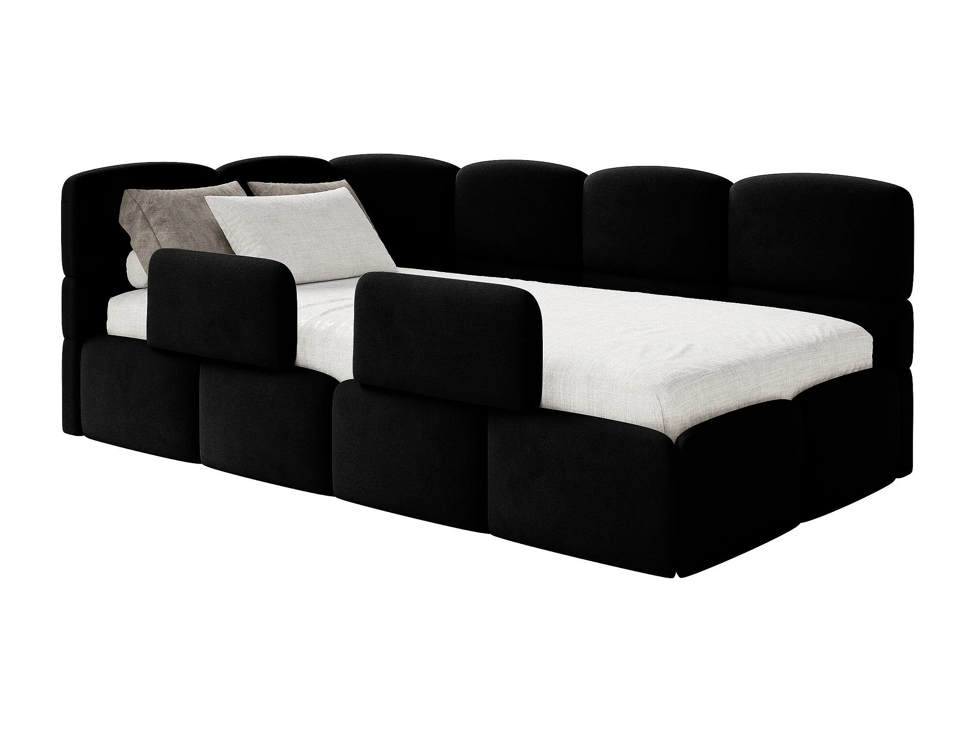 Kinderbett 120x200 Kopfteil links – Matratze & Stauraum – Samt Schwarz – CLOUDY