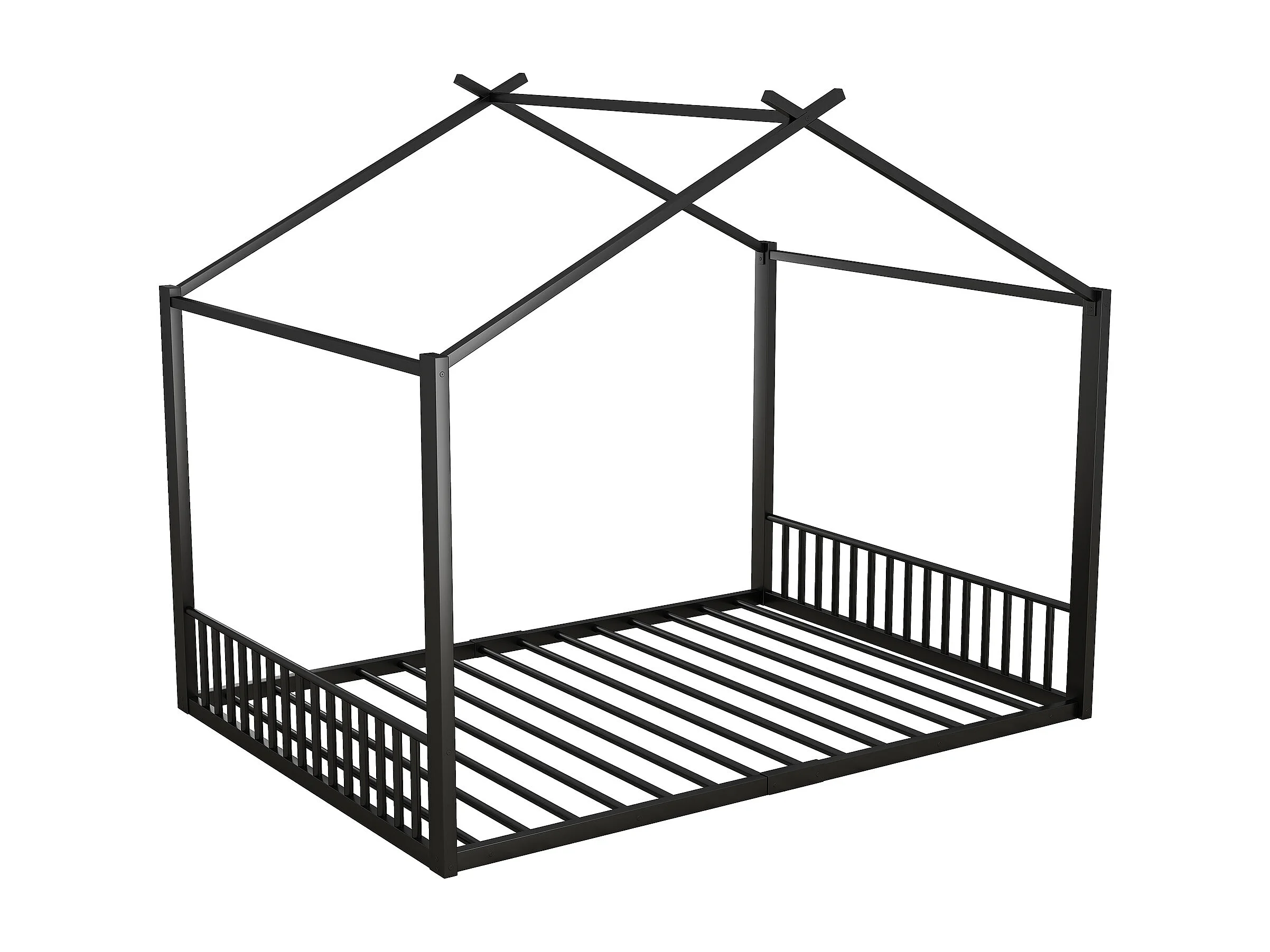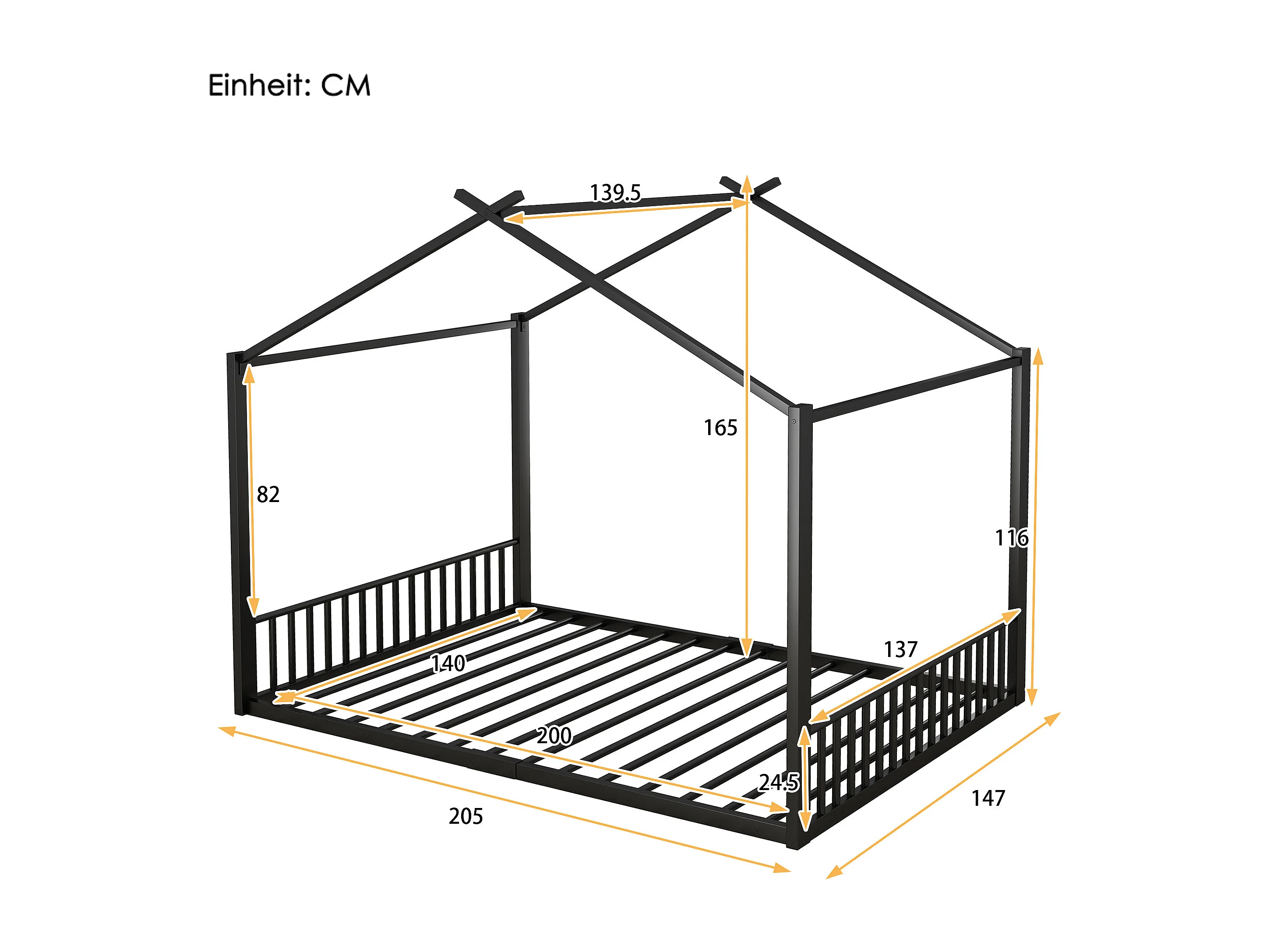 Kinderbett 140x200 cm mit Lattenrost, Metallgestell, schwarz - ohne Matratze