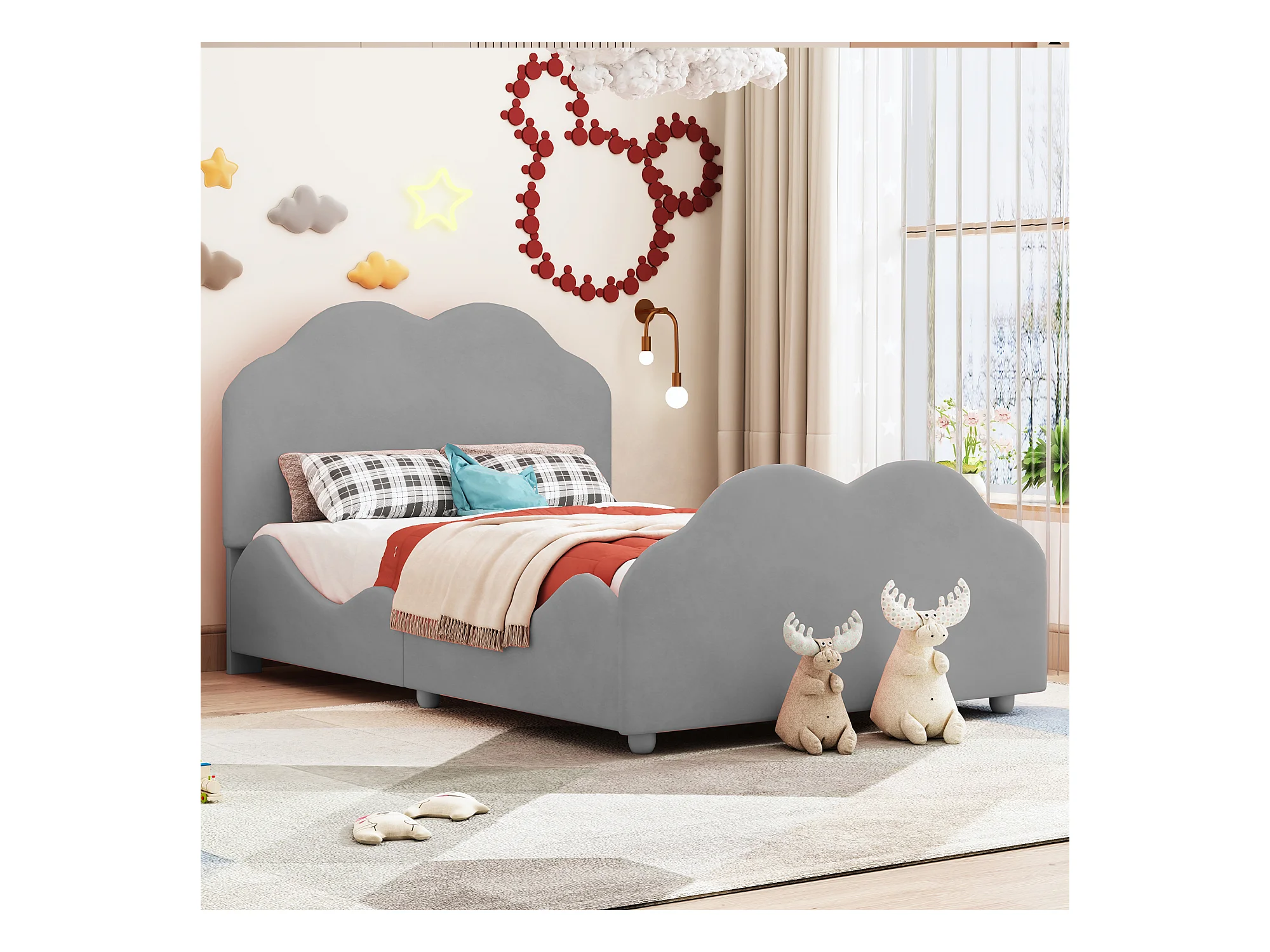 Kinderbett 90 x 200 cm - Einzelbett mit wolkenförmigem Kopfteil und Absturzsicherung - samt grau