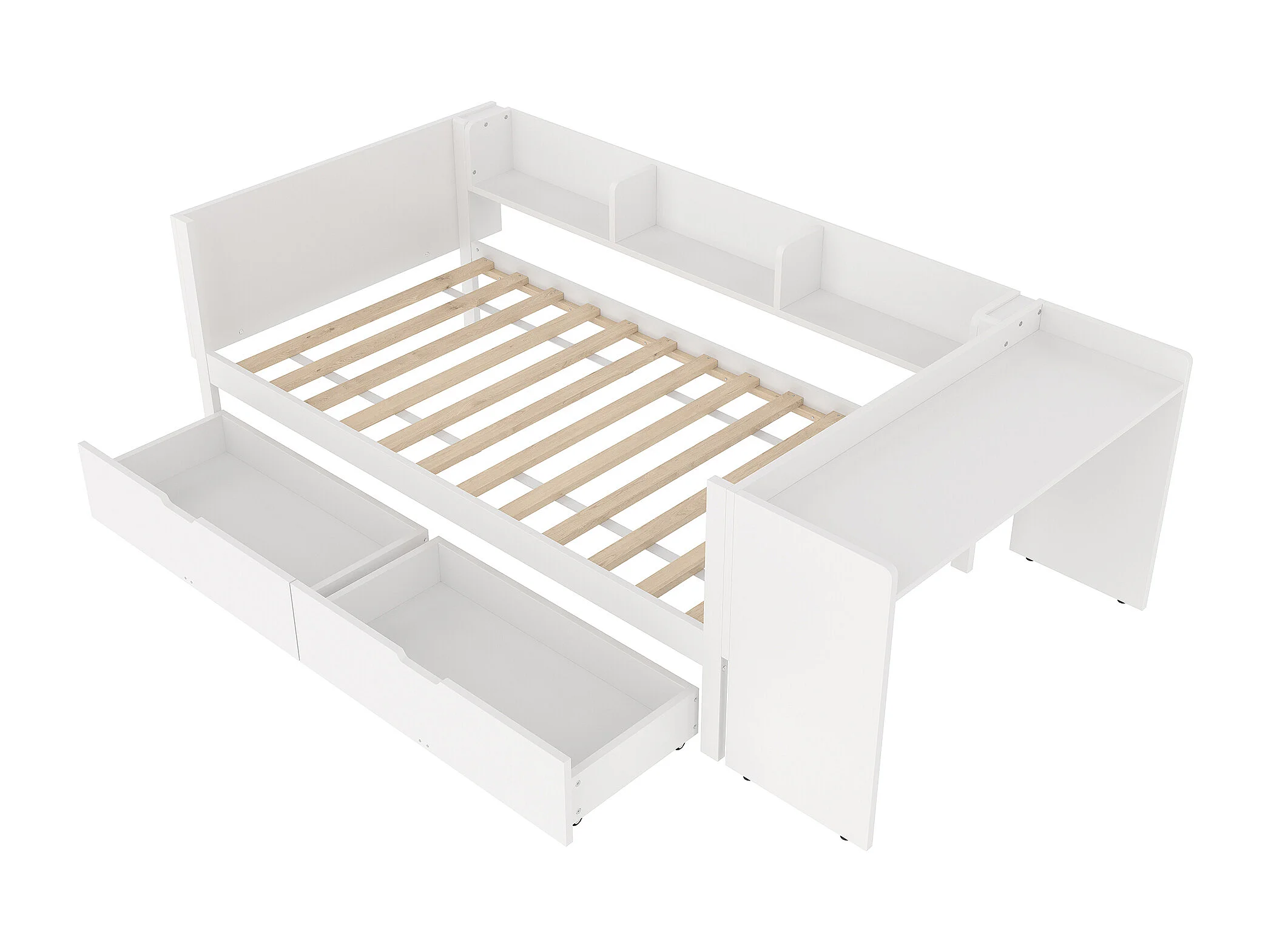 Kinderbett 90 x 200 cm – mit 2 Schubladen und Ablagen – Kiefernholz – Matratze nicht inklusive