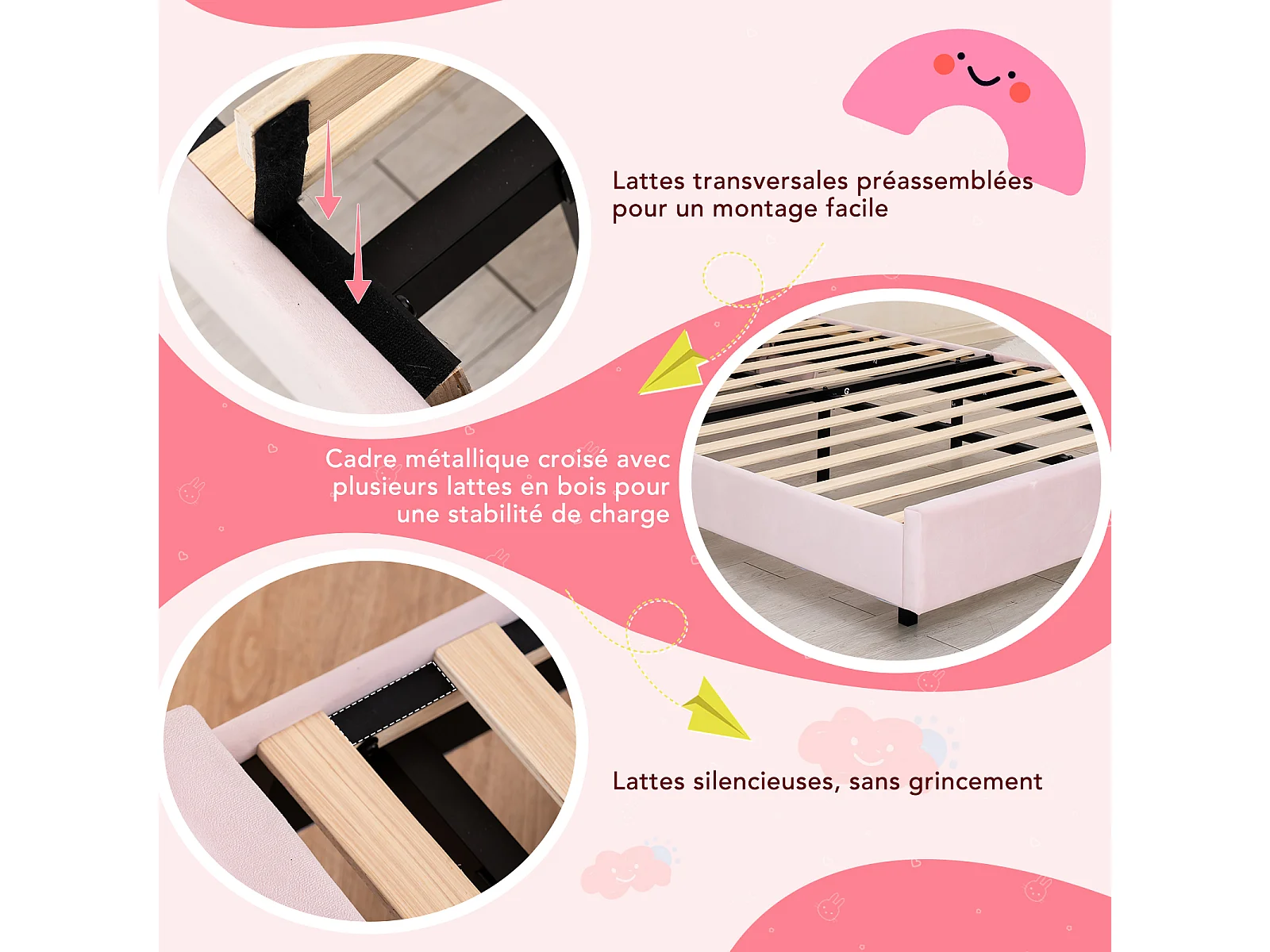 Kinderbett 90 x 200 cm, rosa, einfacher Aufbau, mit mehrfarbigen LEDs, originelles Wolken-Kopfteil