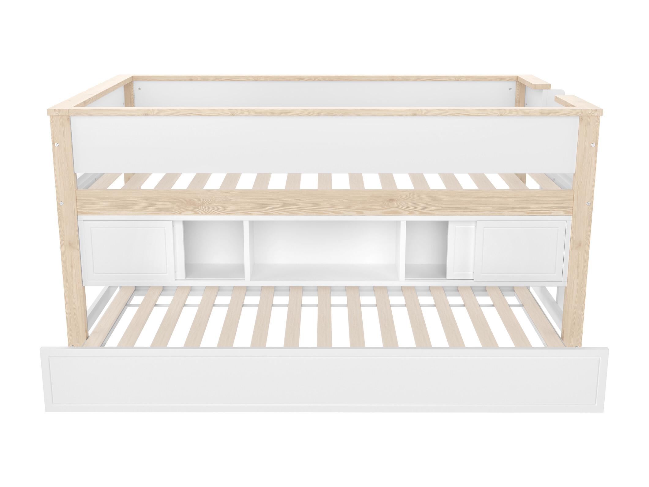 Kinderbett 90x200 cm - mit Nestfunktion - viel Stauraum - weiß + natur (Matratze nicht inbegriffen)