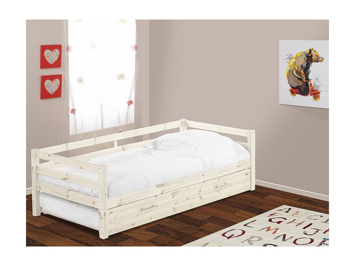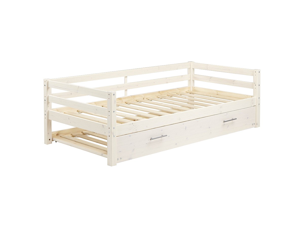 Ausziehbett AEDAN - 2 x 90 x 190 cm - Kiefer massiv - Geweißt
