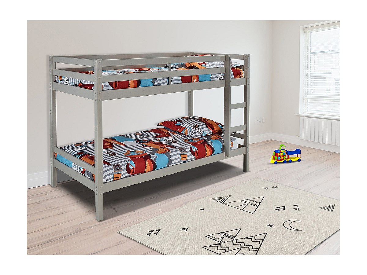 Etagenbett Massivholz ANICET - 2x90x200cm - Kiefer Grau