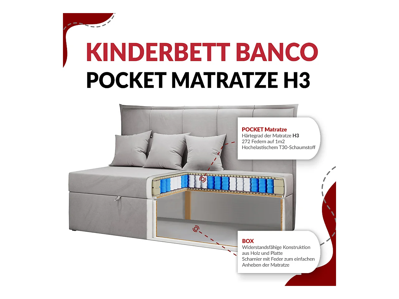 Kinderbett BANCO - Einzelbett für Jugendliche, Set mit Kopfteil und Matratze, Boxspringbett, Bettkasten - 90x200 cm - Gelb Strukture