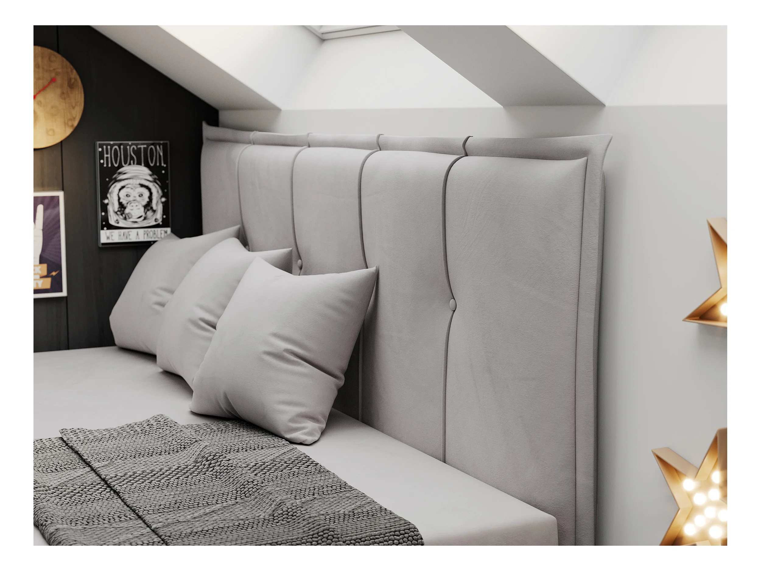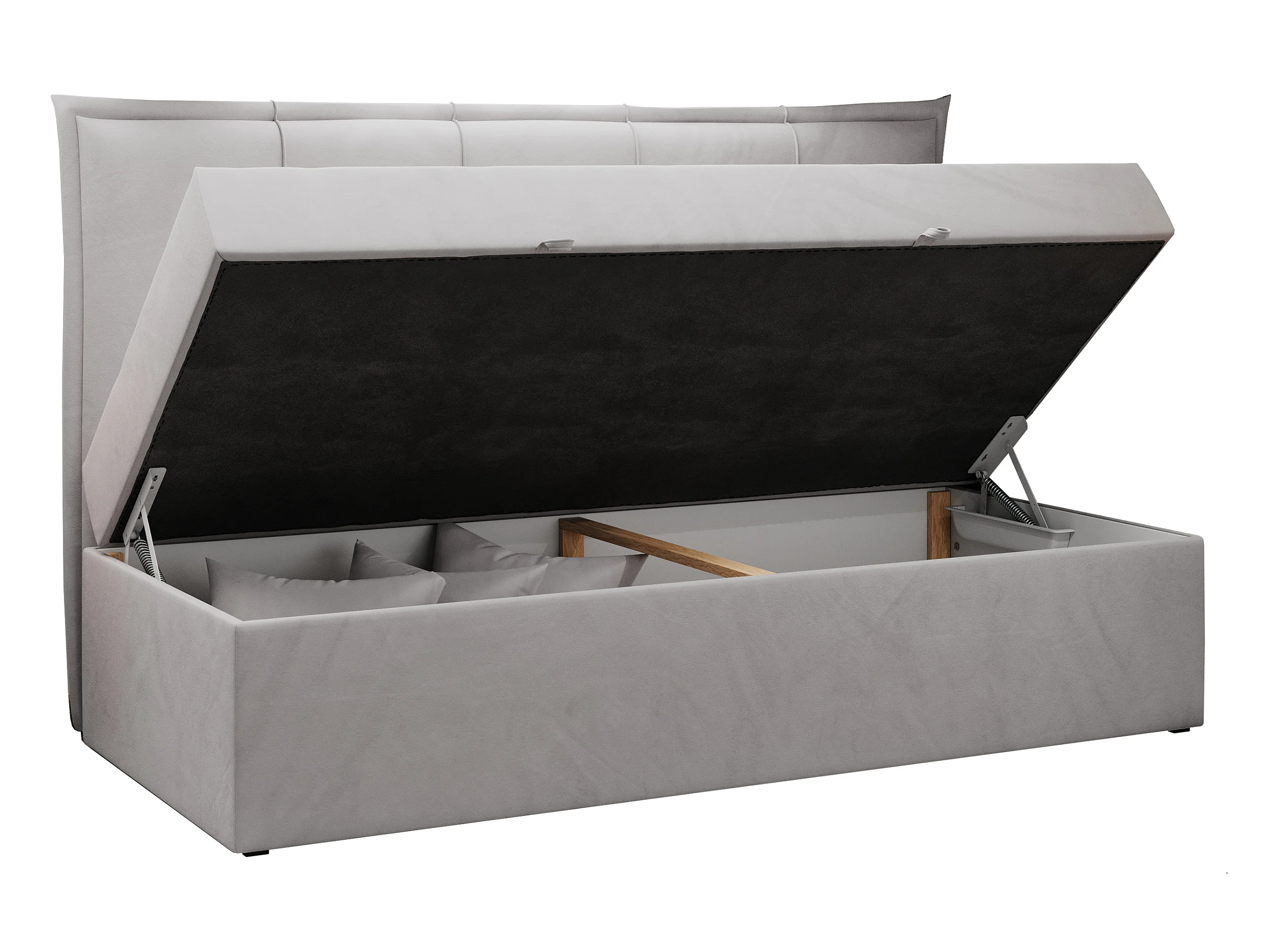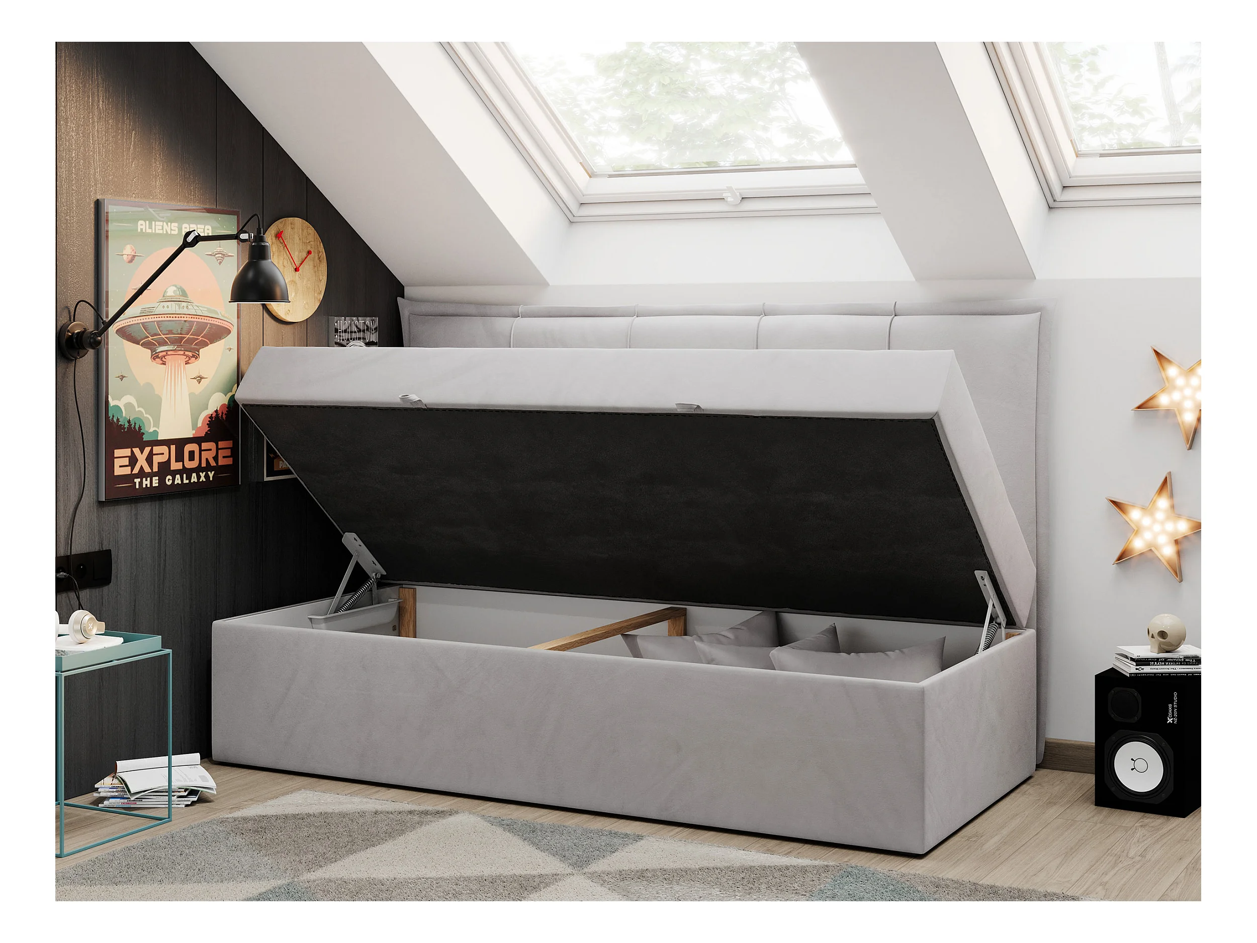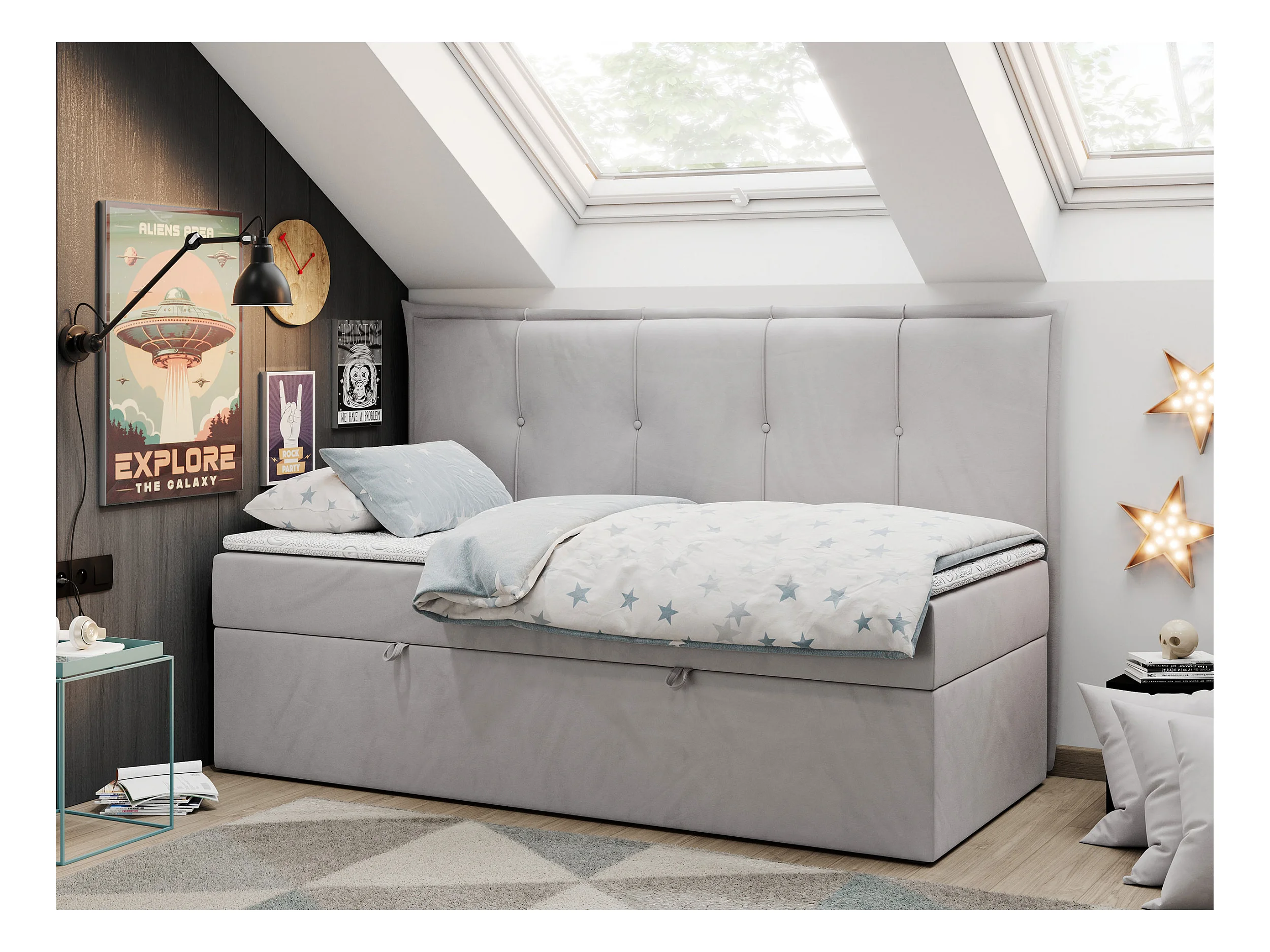 Kinderbett BANCO - Einzelbett für Jugendliche, Set mit Kopfteil und Matratze, Boxspringbett, Bettkasten - 90x200 cm - Hellgrau Velvet