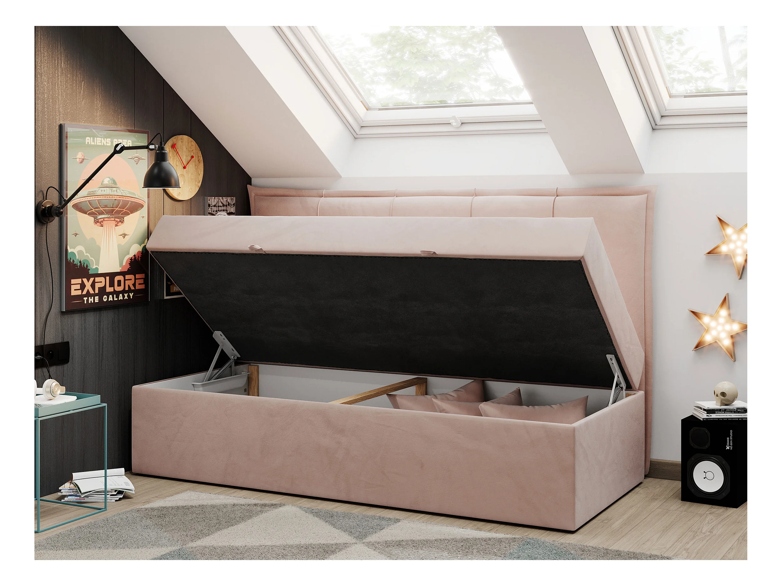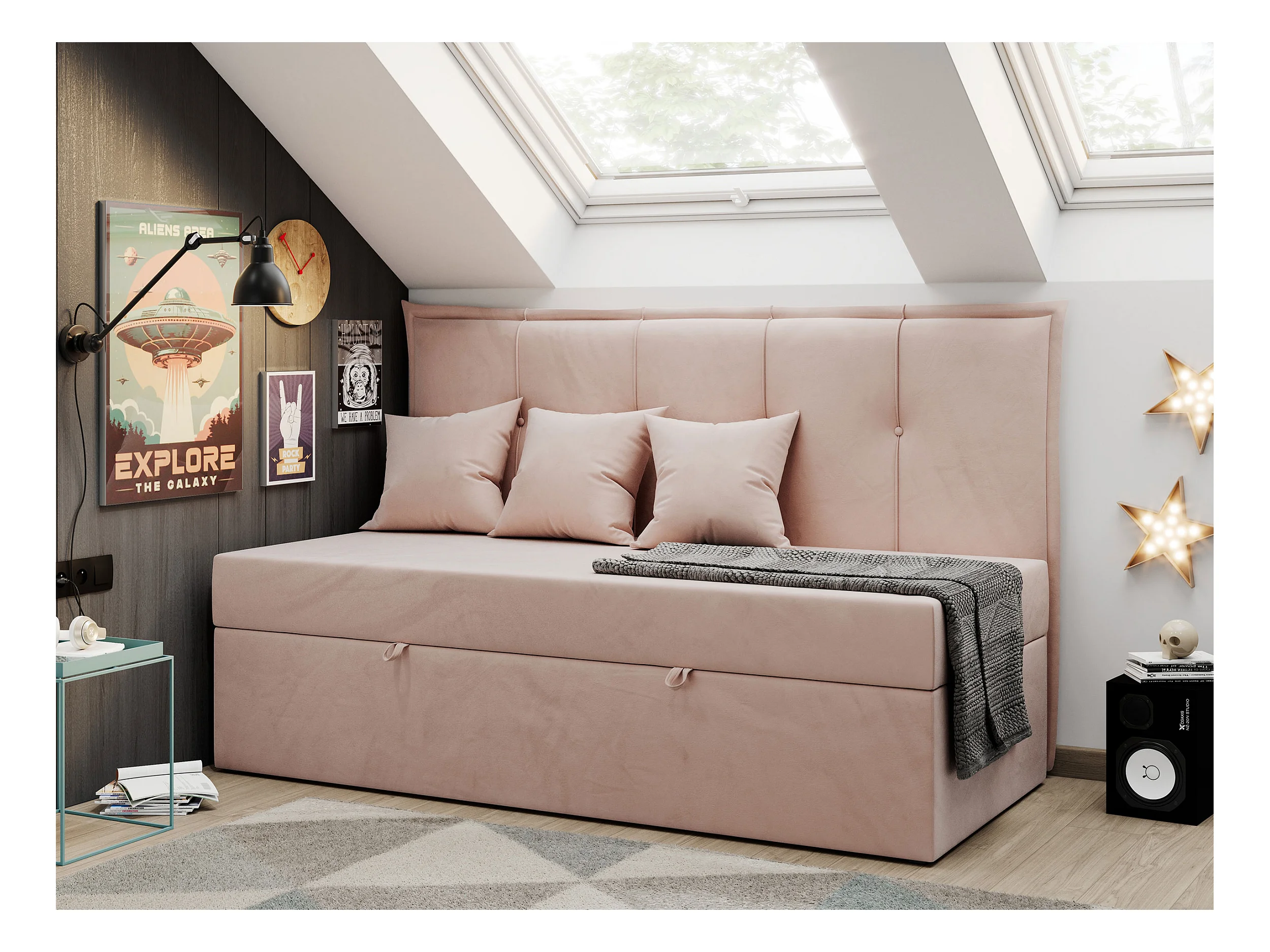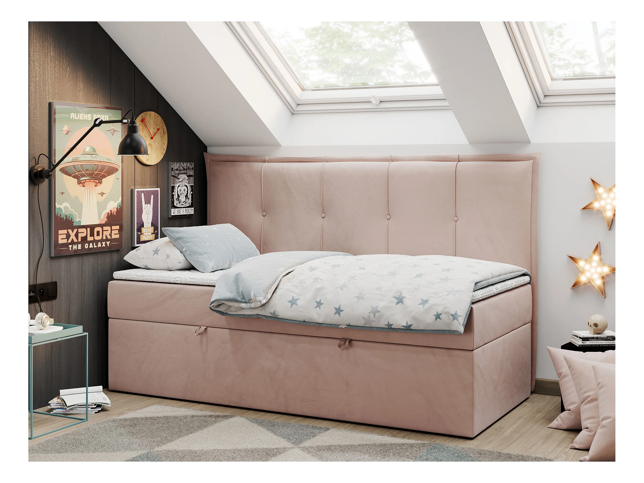 Kinderbett BANCO - Einzelbett für Jugendliche, Set mit Kopfteil und Matratze, Boxspringbett, Bettkasten - 90x200 cm - Rosa Velvet