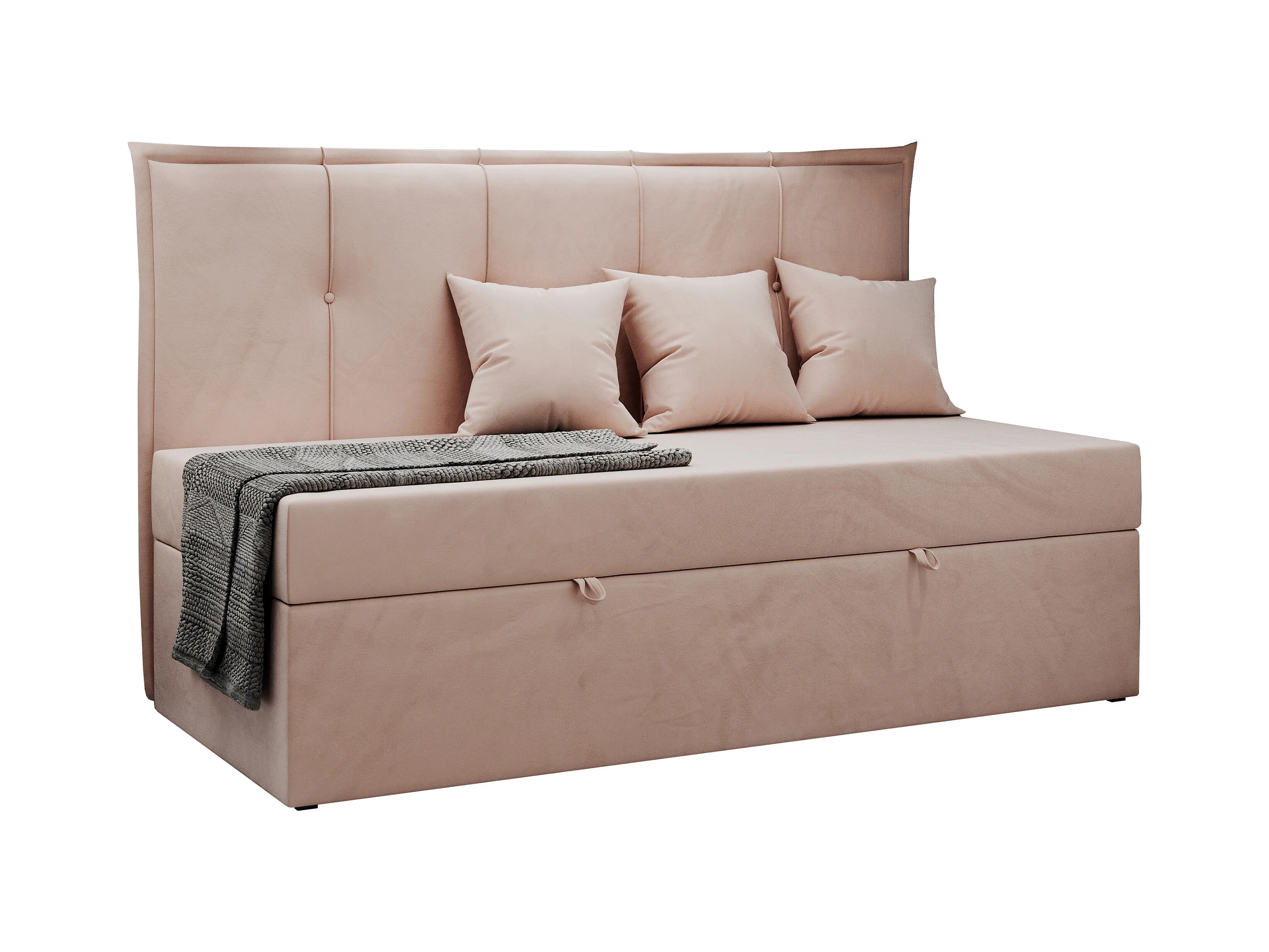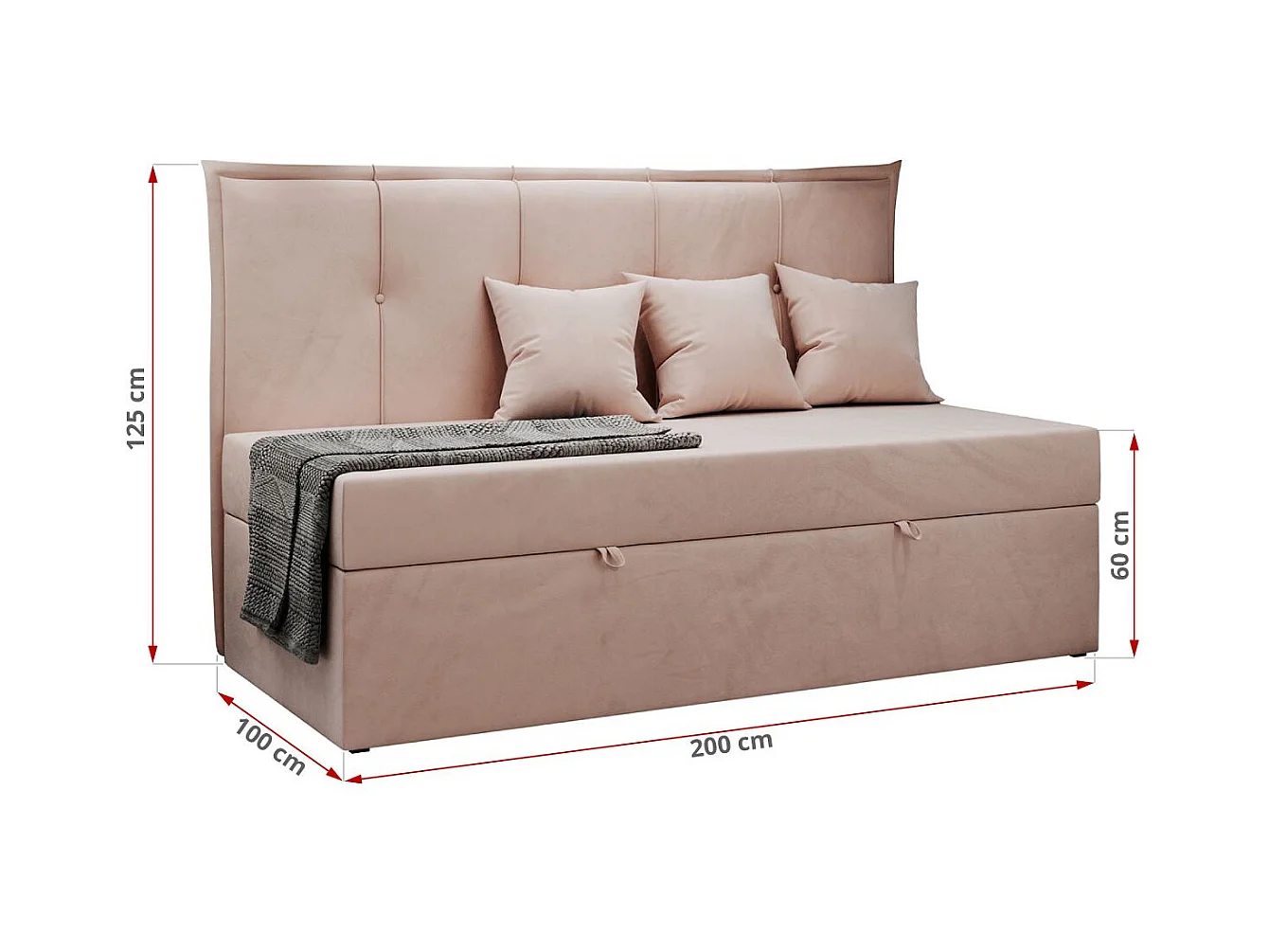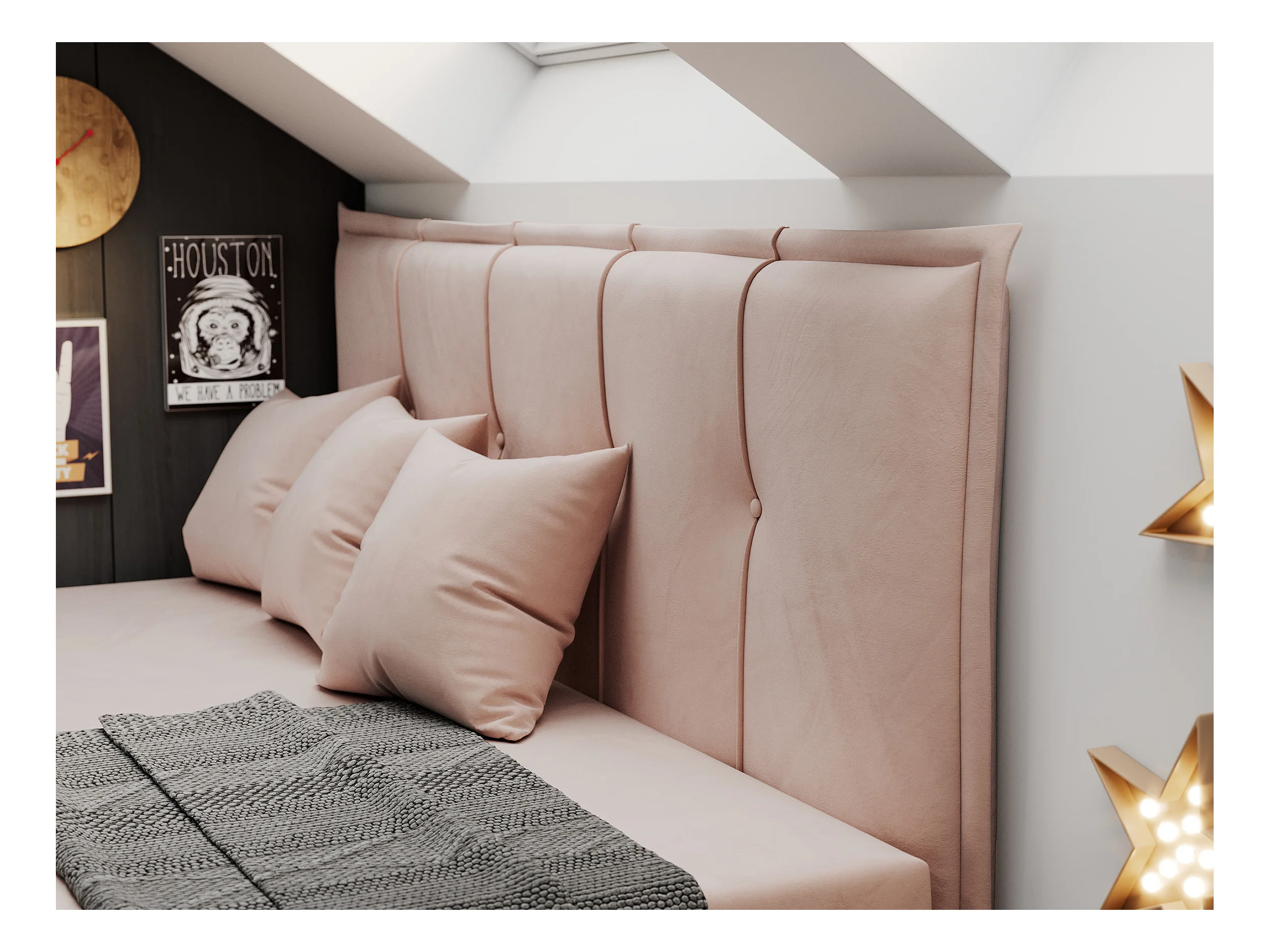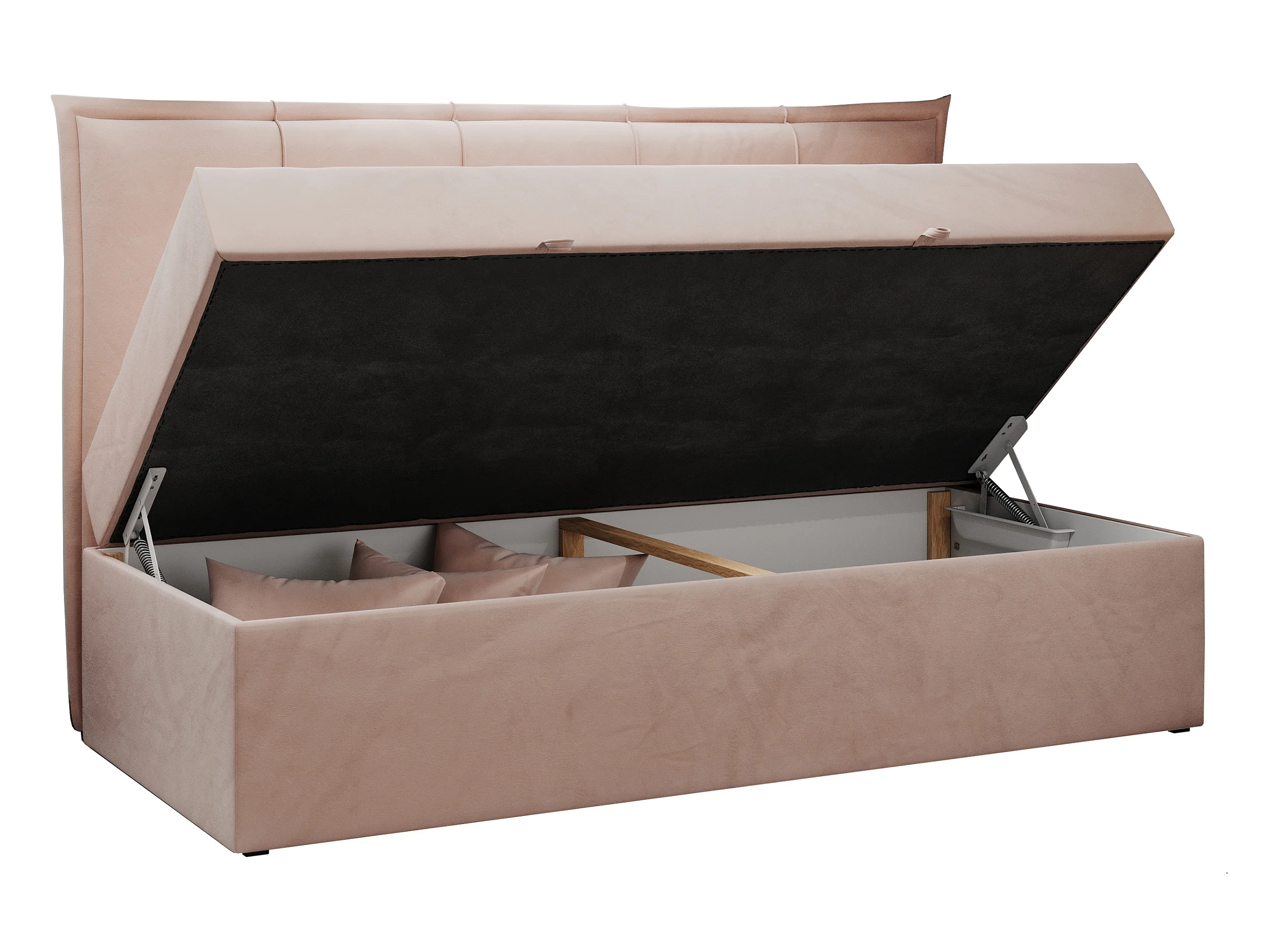 Kinderbett BANCO - Einzelbett für Jugendliche, Set mit Kopfteil und Matratze, Boxspringbett, Bettkasten - 90x200 cm - Rosa Velvet