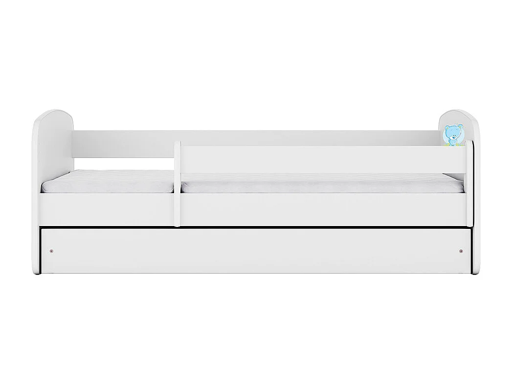 Kinderbett blauer Teddybär Blumen mit Schublade Weiß 160/80 | Jugendbett