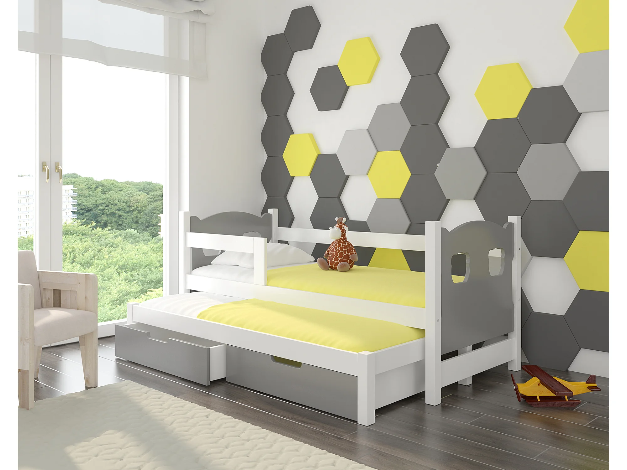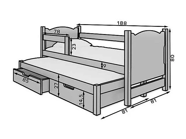 KINDERBETT Campos Farbe Kiefer weiß / grau 188 / 81 / 80cm