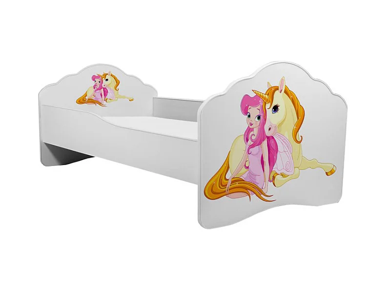 KINDERBETT Casimo weiß / Motiv Elfe mit Einhorn 88 / 164 / 63cm