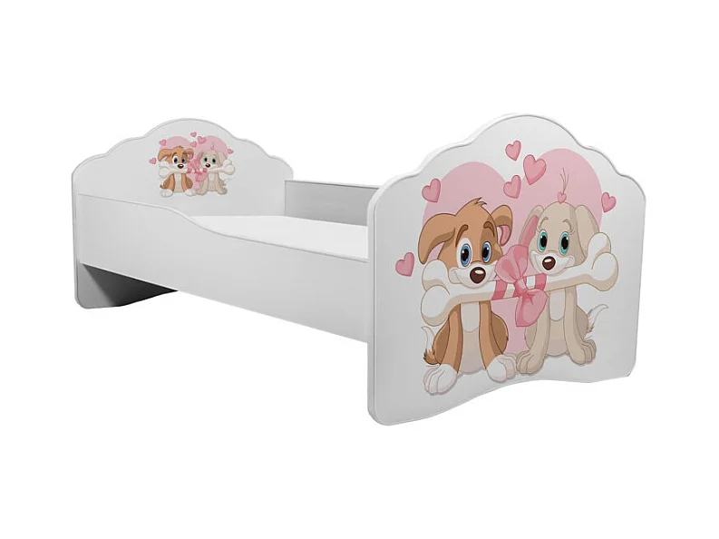 KINDERBETT Casimo weiß / Motiv Hundepaar 88 / 164 / 63cm