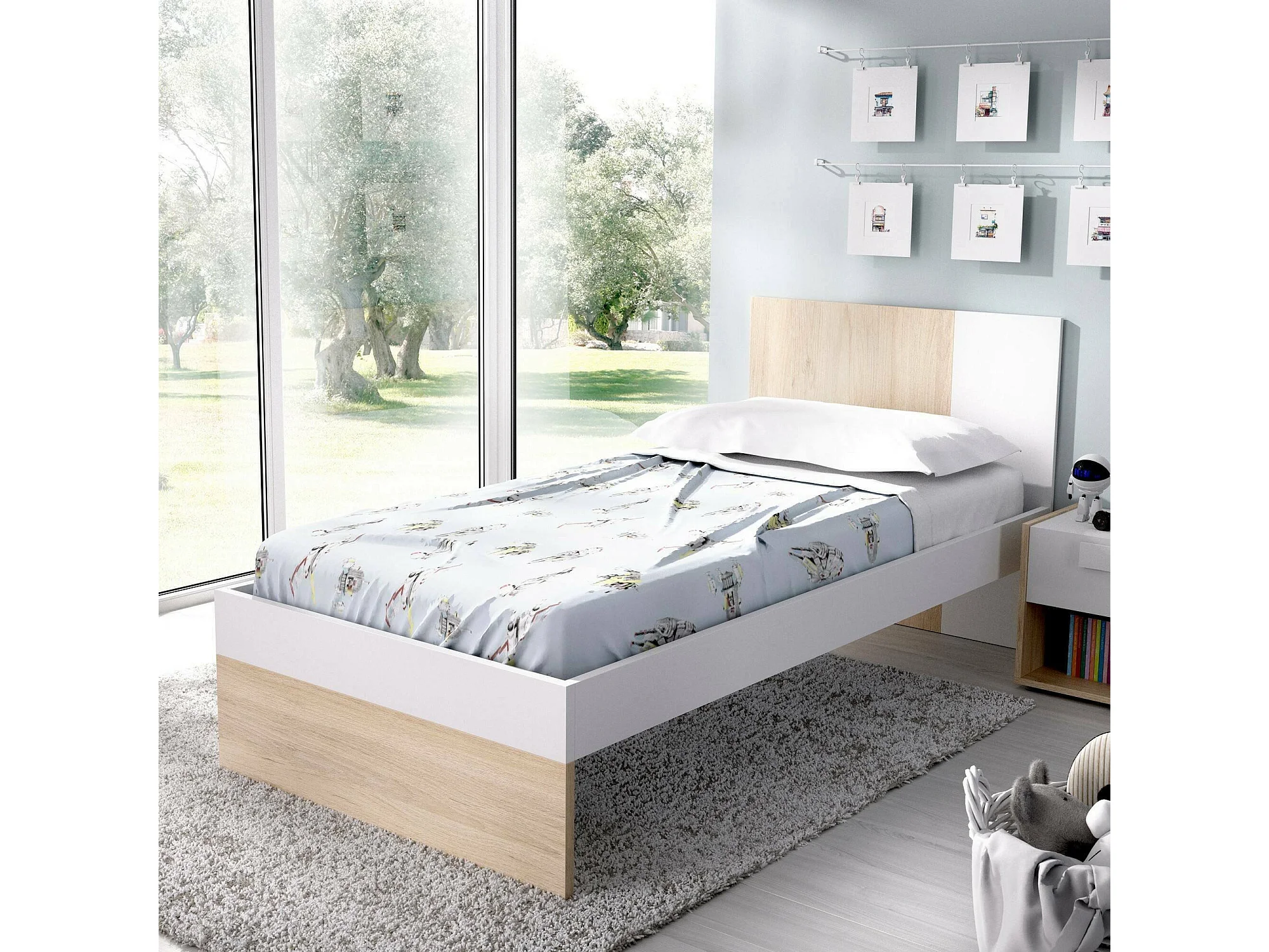 Kinderbett Dcernoi, Struktur mit zweitem Ausziehbett, Einzelbett für Schlafzimmer, 97 x 196 x 79 cm, Weiß und Eiche