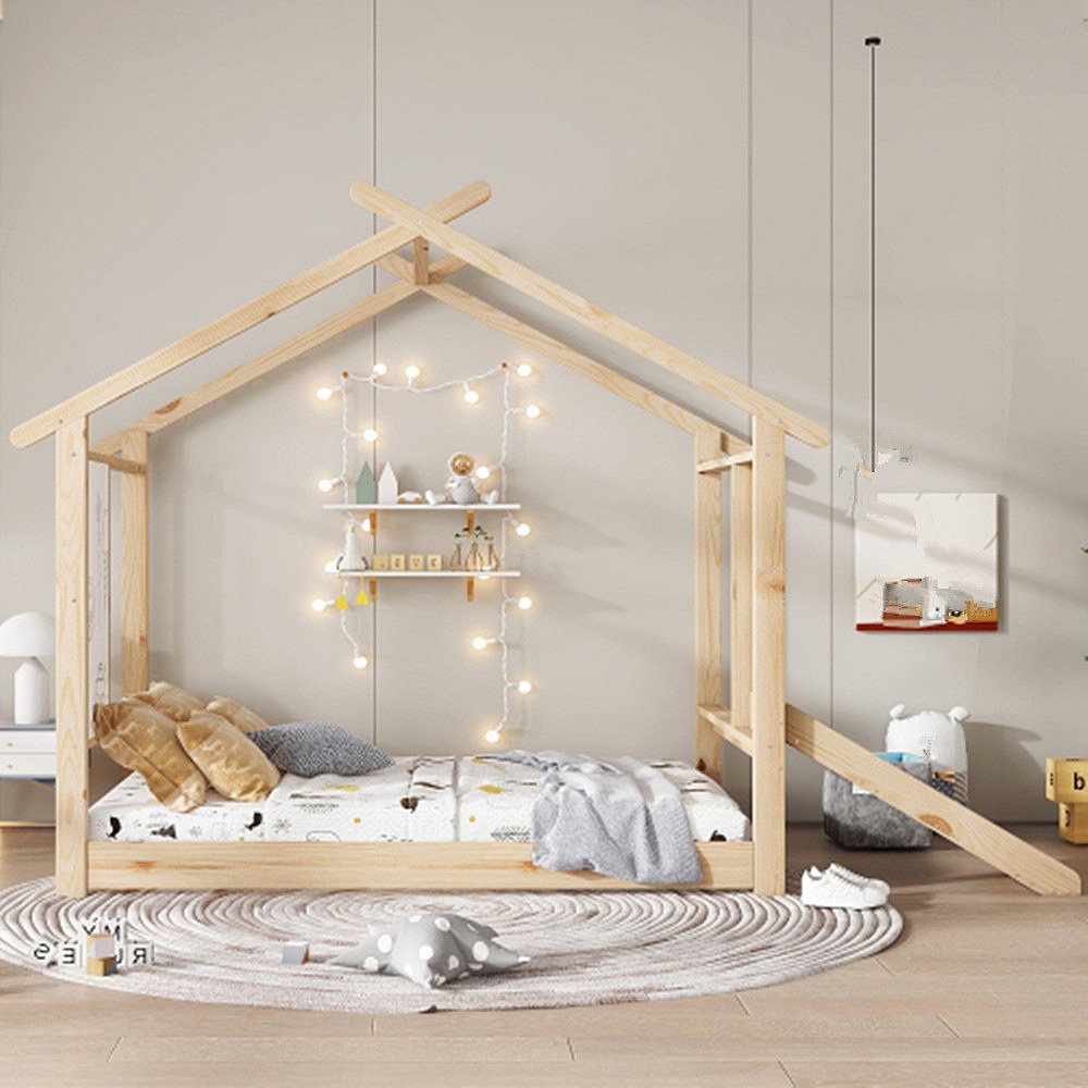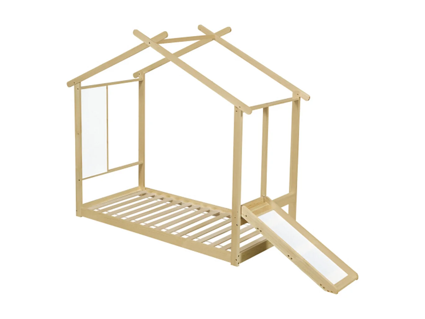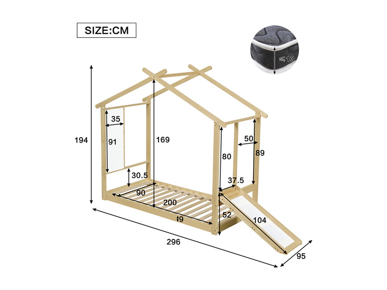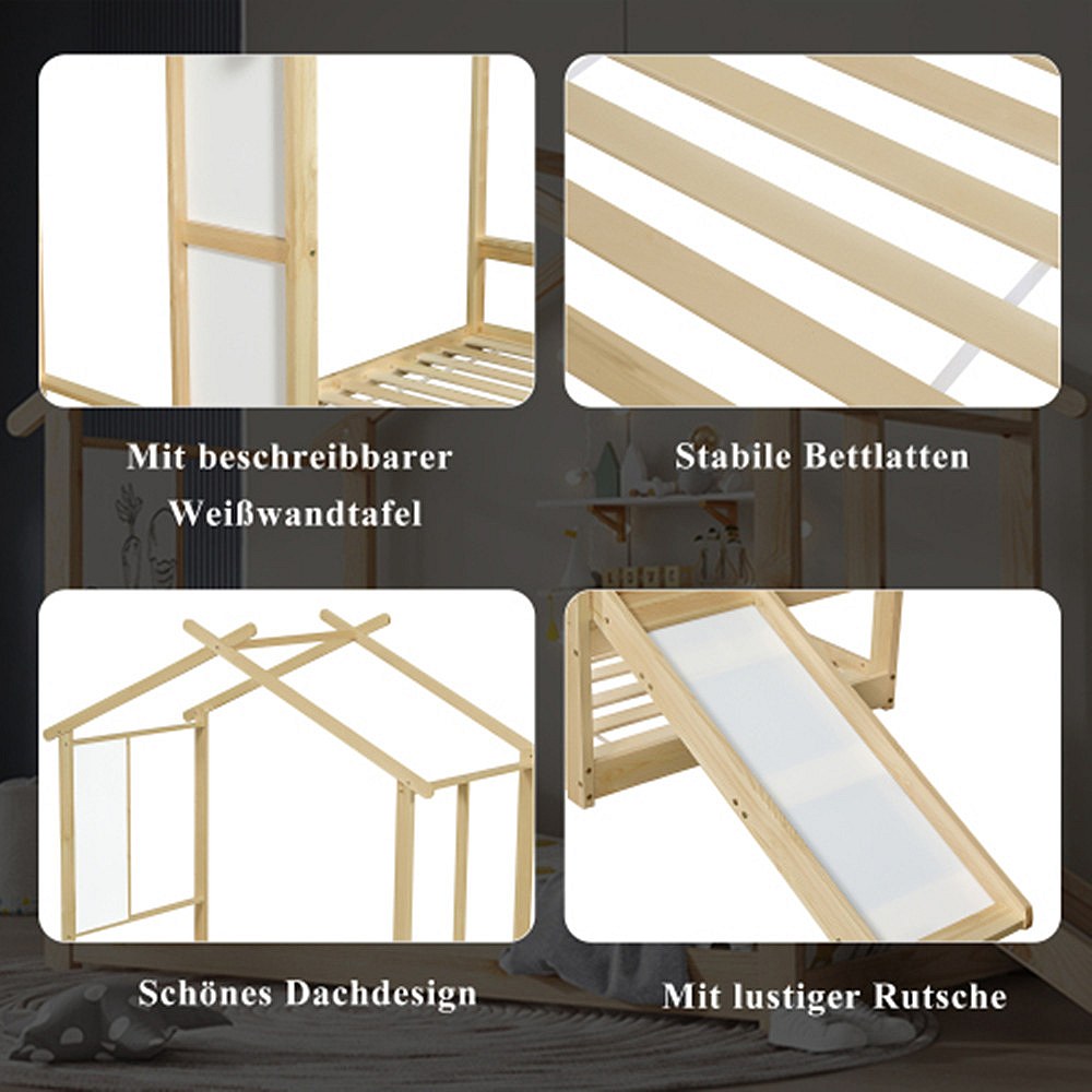 Kinderbett, Einzelbett,Schönes Dachdesign, Mit beschreibbarer Weißwandtafel,90x200cm